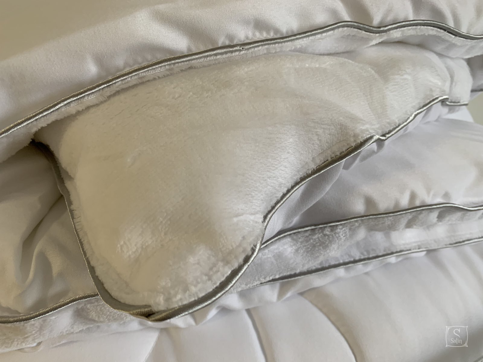 Одеяло Tac Soft с микрогелевым наполнителем с двухсторонним чехлом. Одно и то же одеяло придает ощущения тепла или прохлады, в зависимости от того, какой стороной его положить. Поверхность из микрофибры с одной стороны и плюшевая с другой.