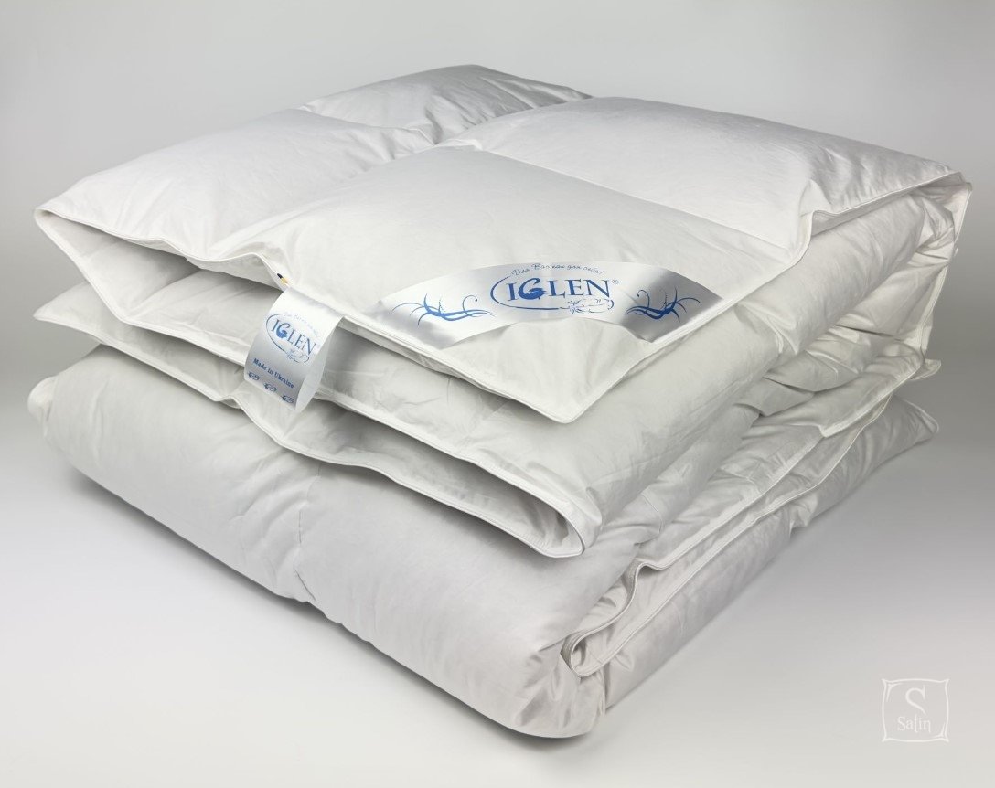 Одеяло зимнее теплое Iglen Roster пуховое (100% белый пух, кассетная технология) в чехле из немецкого батиста, с окантовкой.