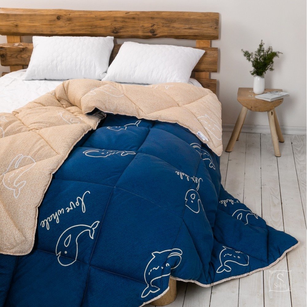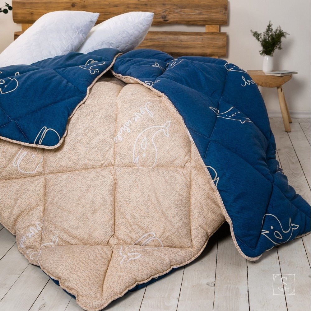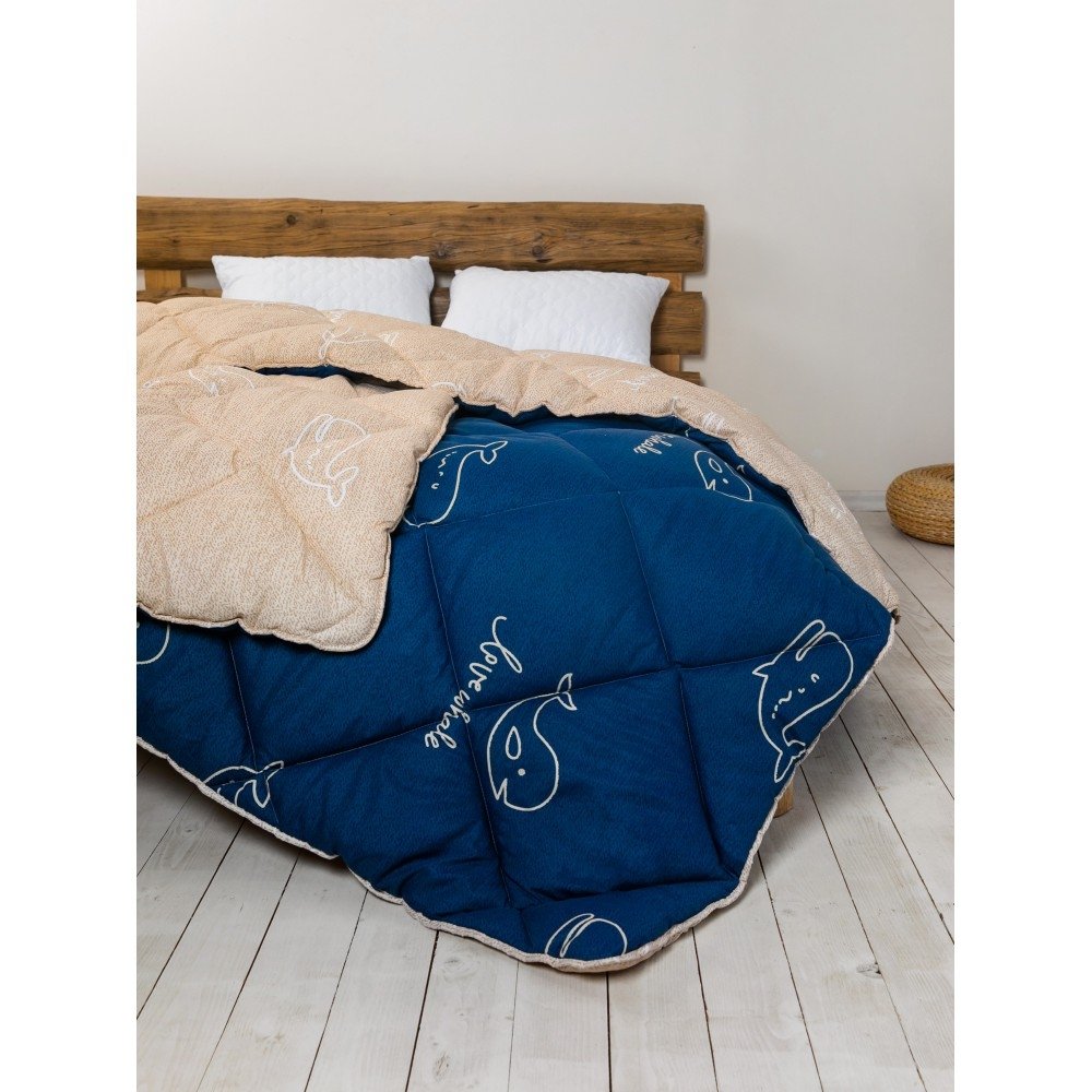 Одеяло ТЕП ALASKA повышенной плотности для очень холодной зимы, с комбинированным сине-бежевым чехлом с рисунком .