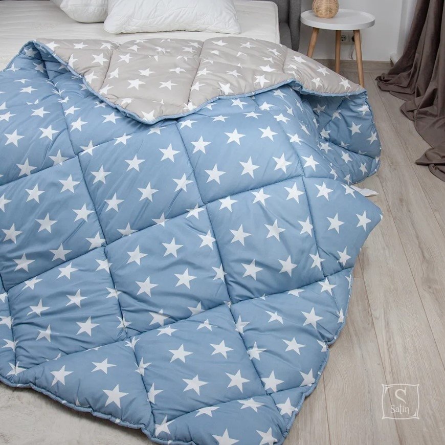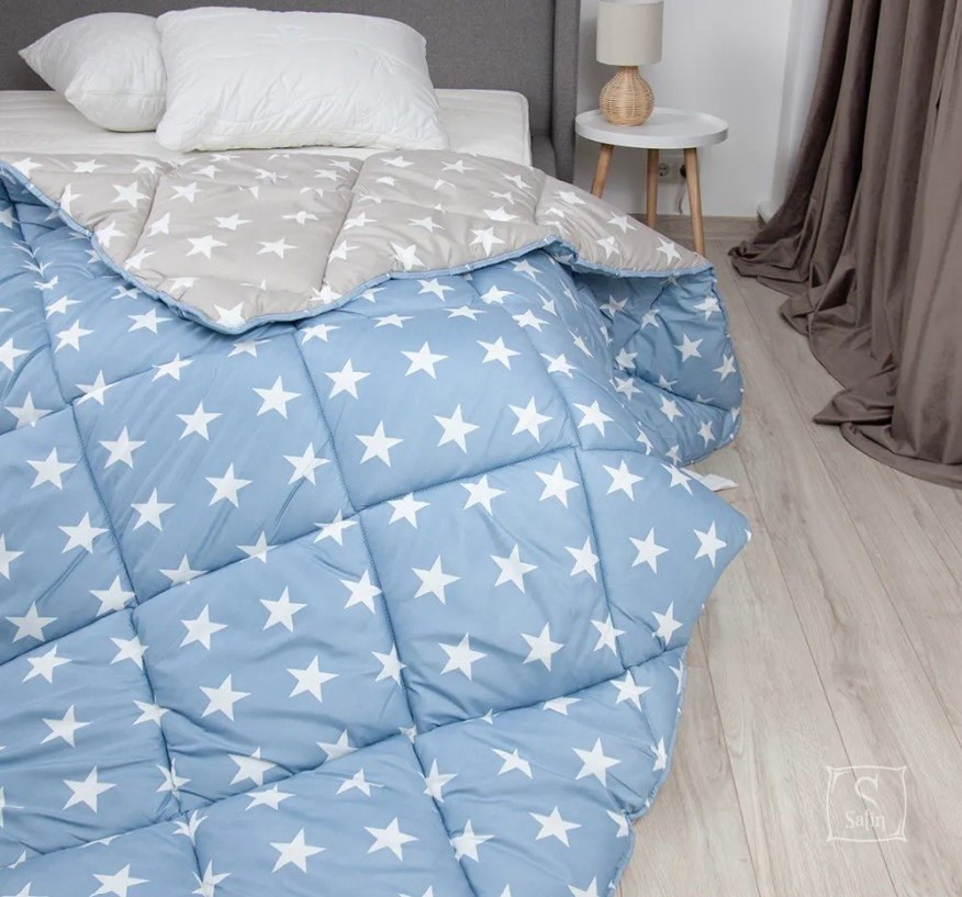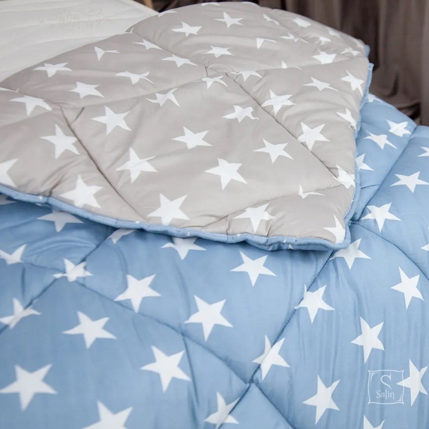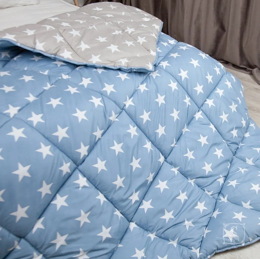 Одеяло ТЕП ALASKA повышенной плотности 450 г/м² для очень холодной зимы, с комбинированным серо-голубым чехлом, с рисунком звезды.