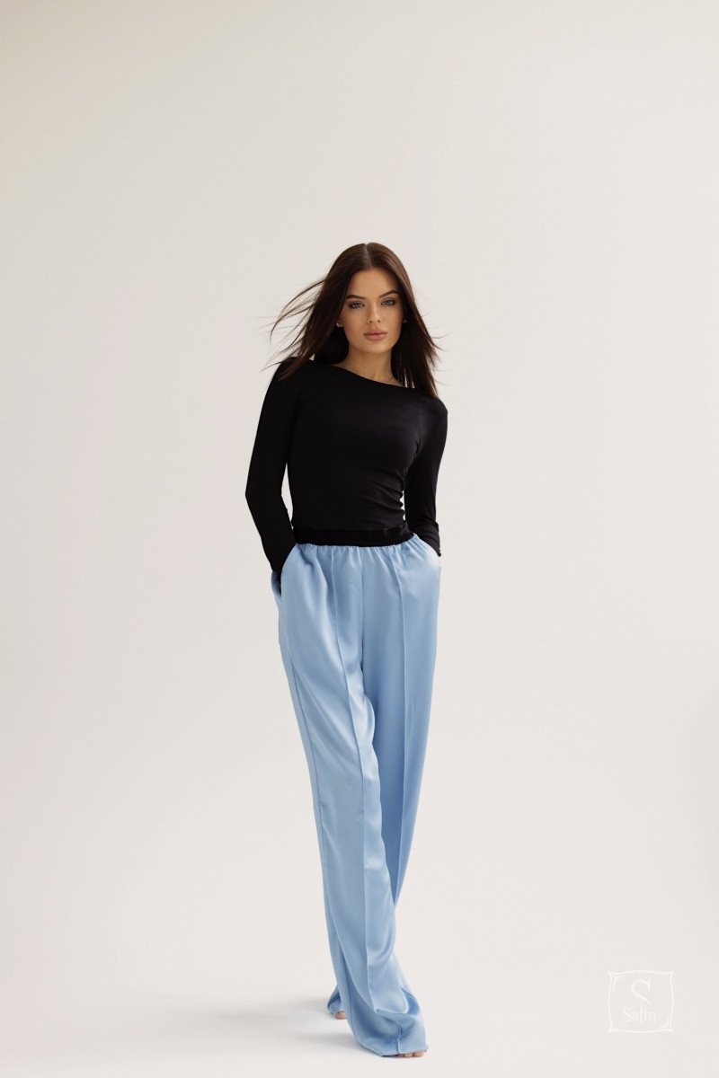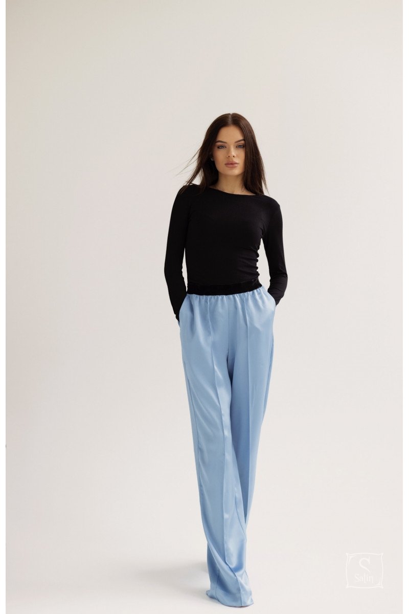 Брюки женские атласные German Volf 21068-2 голубого цвета сочетают в себе удобство ткани с выразительным стилем. Эта модель точно станет любимой в вашем гардеробе, так как ее можно комбинировать с любой обувью и другими элементами вашей одежды и при этом выглядеть непревзойденно.