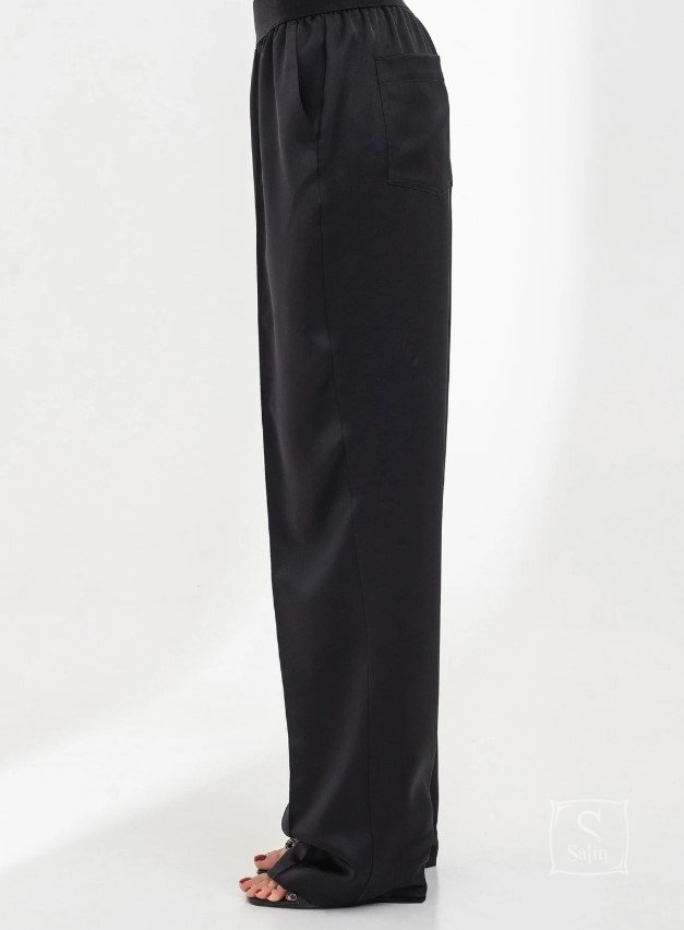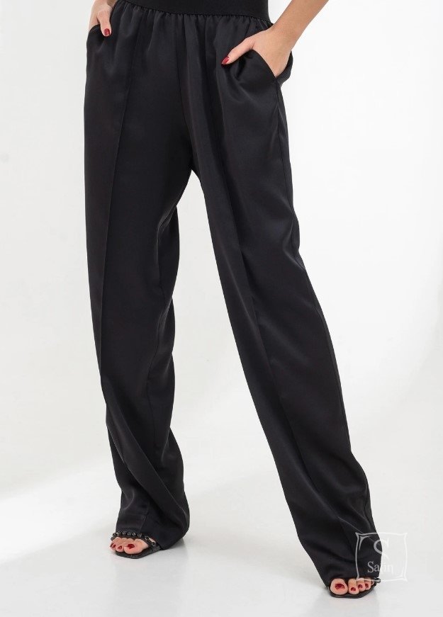 Брюки женские атласные German Volf 21068 черного цвета сочетают в себе удобство ткани с выразительным стилем. Эта модель точно станет любимой в вашем гардеробе, так как ее можно комбинировать с любой обувью и другими элементами вашей одежды и при этом выглядеть непревзойденно.