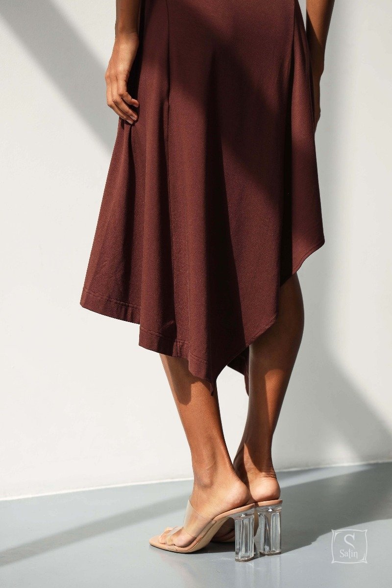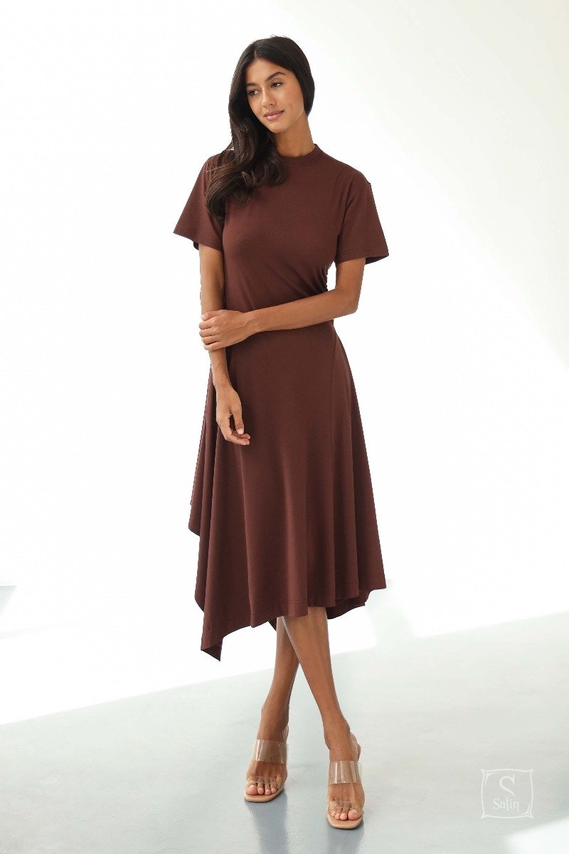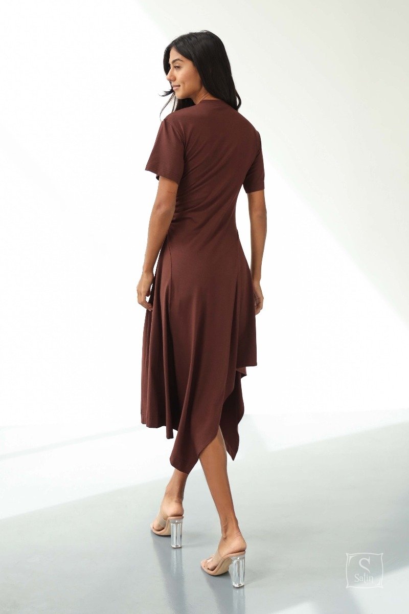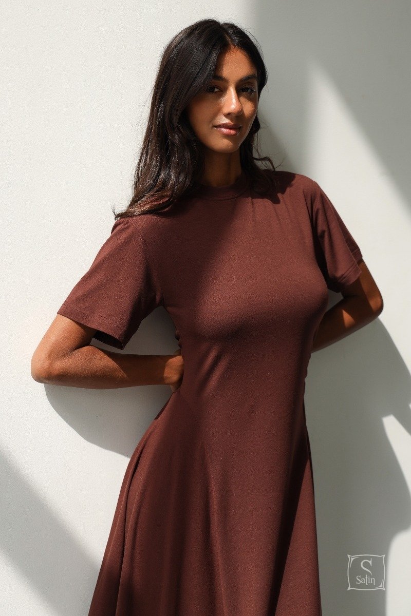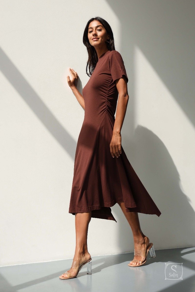 Уверенно и стильно с нашим длинным платьем German Volf 24043 цвета шоколад из модаловой ткани. С фиксированными складками по бокам, платье придаст вашему образу особый шарм. Это платье – идеальный выбор как для вечерней прогулки, так и для особого мероприятия. Просто, современно и в тренде.