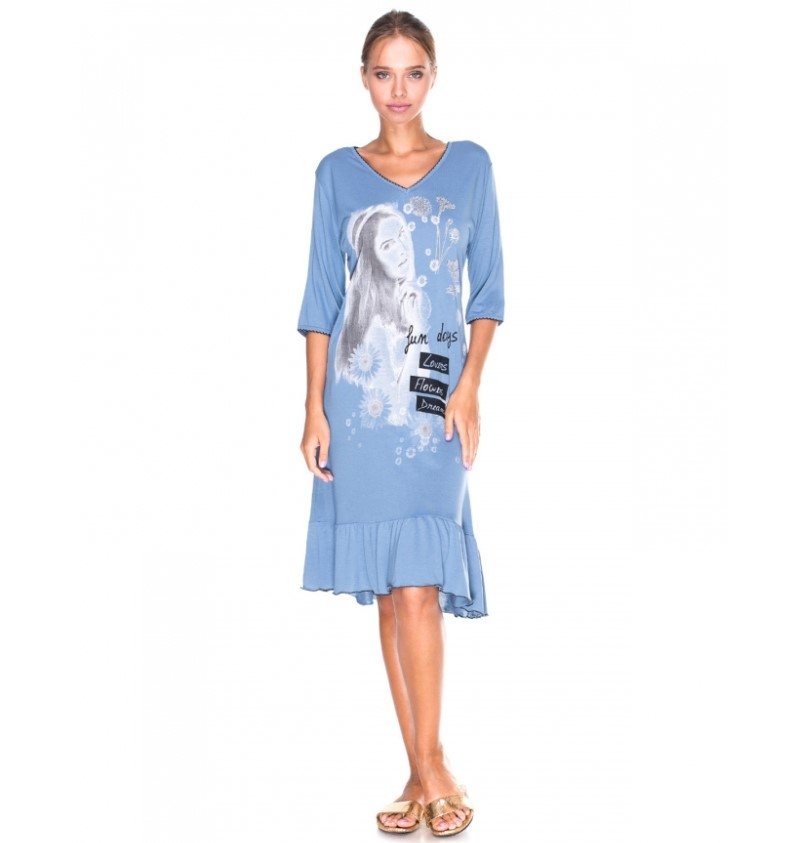 Женская туника Sccalla 2103 представлена в голубом цвете с оригинальным принтом.
