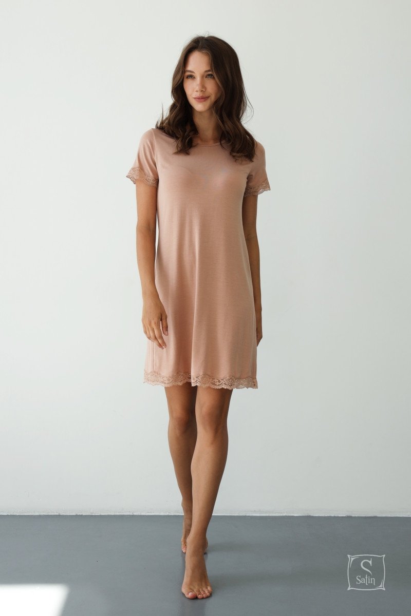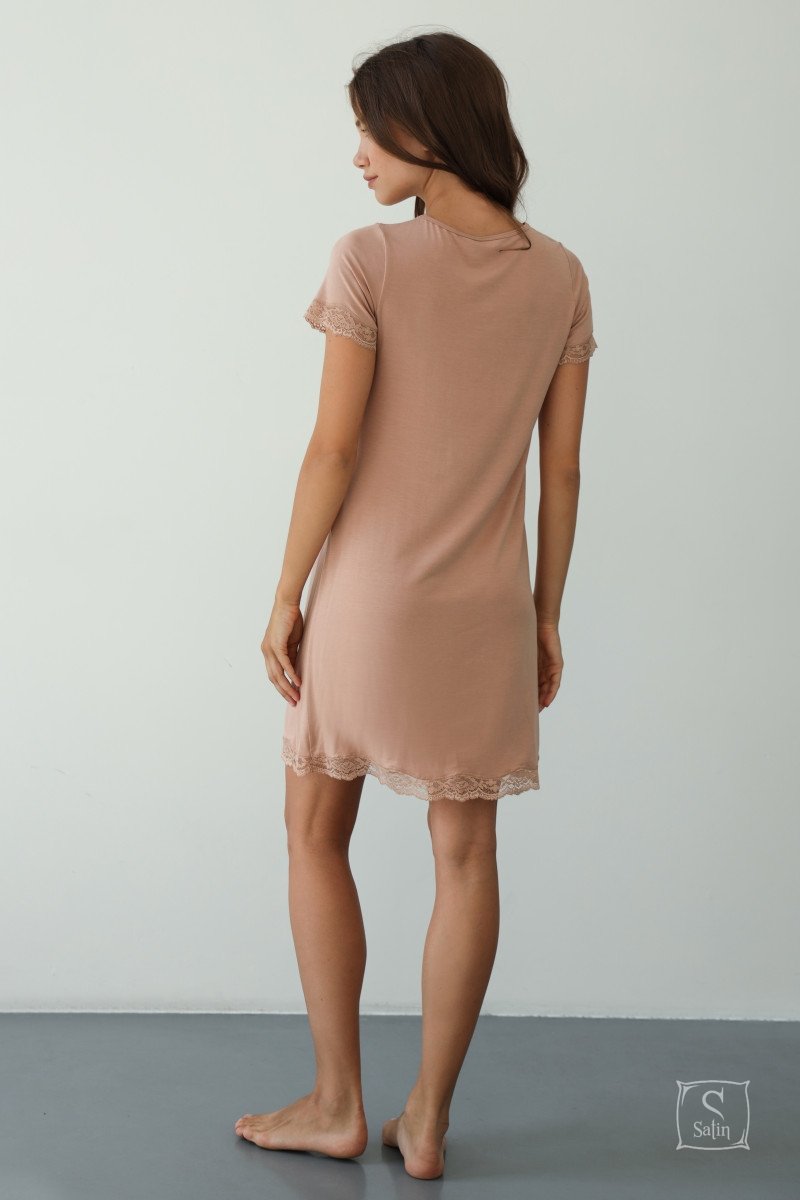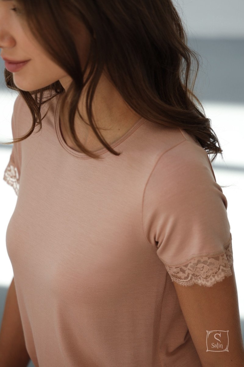 Футболка-сорочка для сна German Volf. 24081 модал с кружевом бежевого цвета