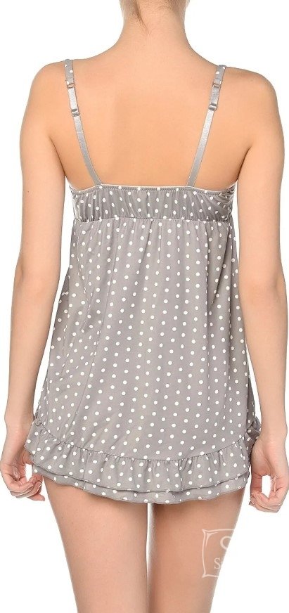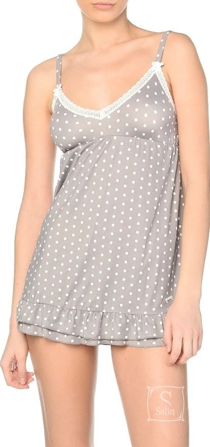 Комплект U.S. Polo Assn 62000, серого цвета состоит из пеньюара и стрингов. Комплект выполнен в мелкий горошек, пеньюар декорирован бантиком и оборкой по низу. Является прекрасной удобной и нарядной одеждой для дома и сна.