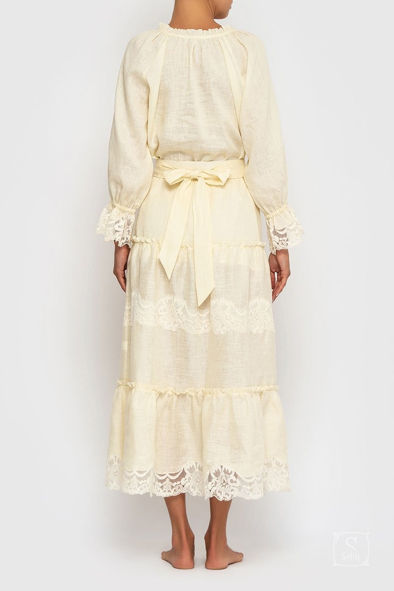 Костюм льняной в стиле бохо German Volf. 21041-2 юбка и блузка молочного цвета с кружевом