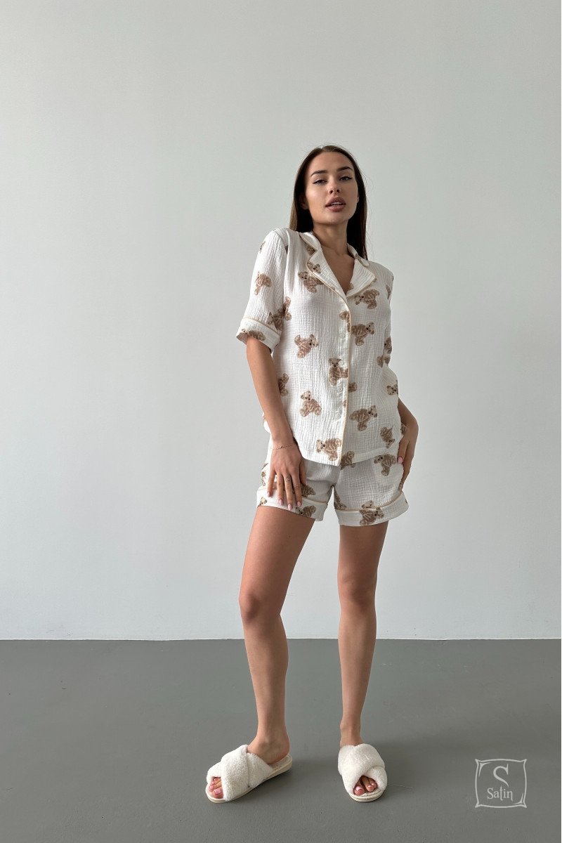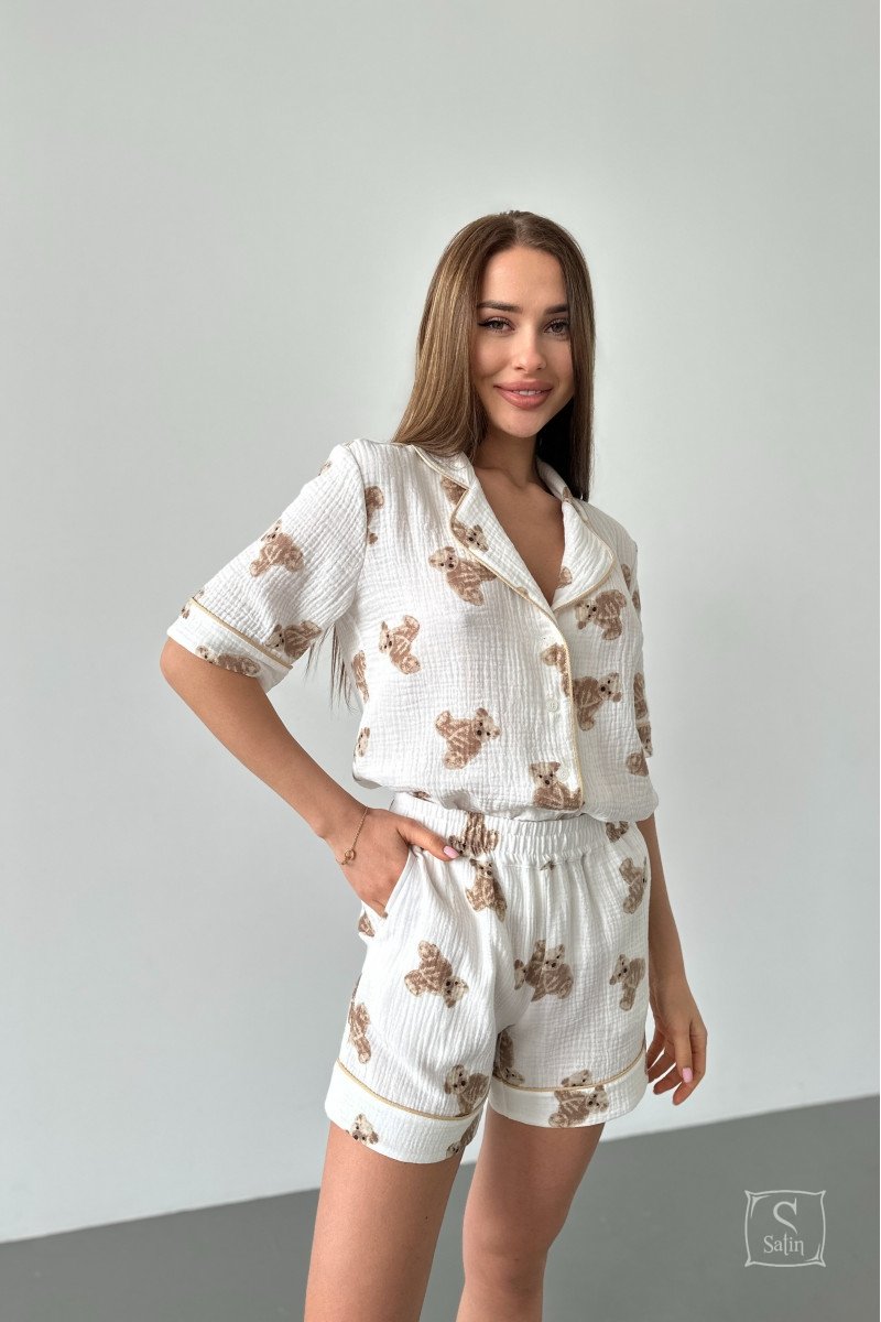 Пижамный комплект из муслина с принтом "мишки" от German Volf – это идеальный выбор для женщин, которые ценят комфорт и оригинальный дизайн. Он подарит вам радость и уют, обеспечивая комфортный сон и приятные моменты дома. Независимо от того, готовитесь ли вы ко сну или просто хотите расслабиться дома, этот комплект станет вашим любимым выбором для отдыха и придаст вашему стилю игривое настроение.