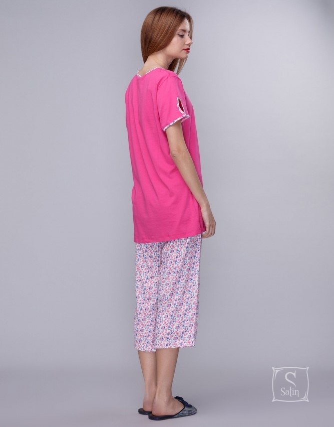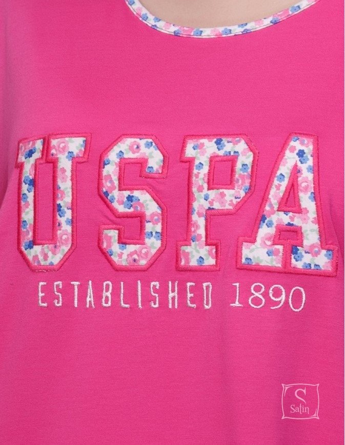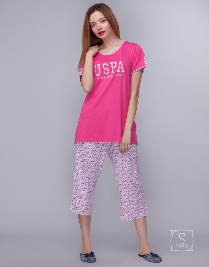 Домашний женский комплект U.S. Polo Assn 15601 включает футболку цвета фуксия и бриджи с цветочным узором. Модель со стильным и комфортным дизайном, практична и удобна.