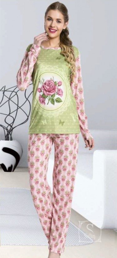 Пижама женская Lady Lingerie 9233 включает кофту и штаны с узором розы. Модель со стильным и комфортным дизайном, практична и удобна.