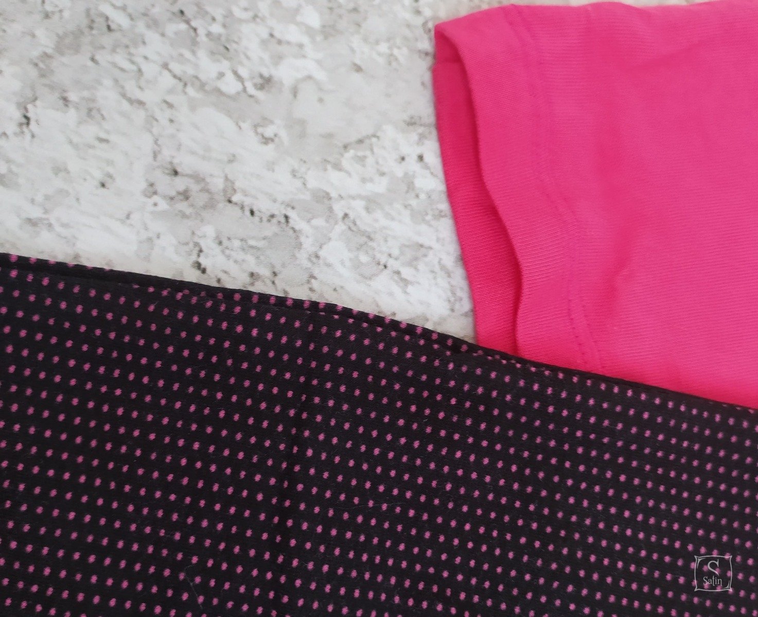 Пижама женская EGO P 08 состоит из футболки с коротким рукавом и бриджей. Футболка в стиле реглан розовая, бриджи - черные в розовый мелкий горошек. Изготовлена из хлопкового трикотажа. Является прекрасной удобной и нарядной одеждой для дома и сна.