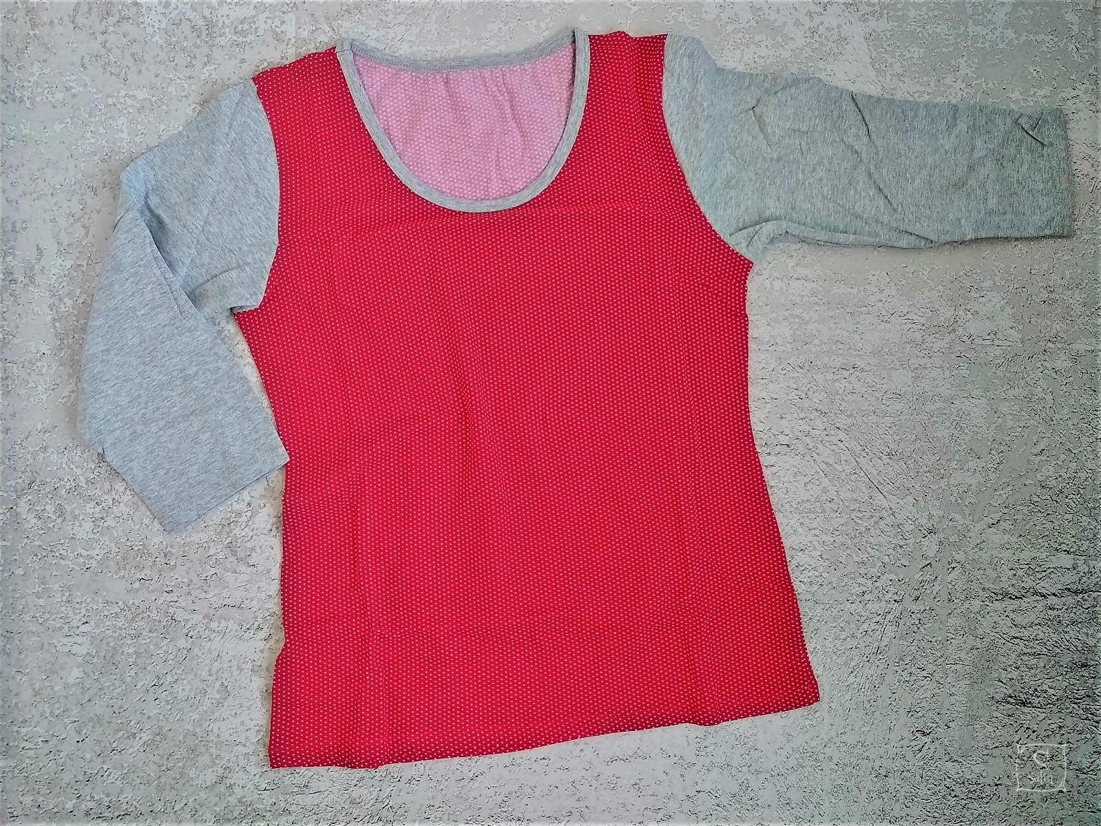 Пижама женская EGO PK 05 выполнена в серо-красном цвете, состоит из футболки с рукавом 3\4 и бриджей. Футболка комбинированная (белый горошек на красном фоне+серый меланж), бриджи - серый меланж. Изготовлена из хлопкового трикотажа. Является прекрасной удобной и нарядной одеждой для дома и сна.