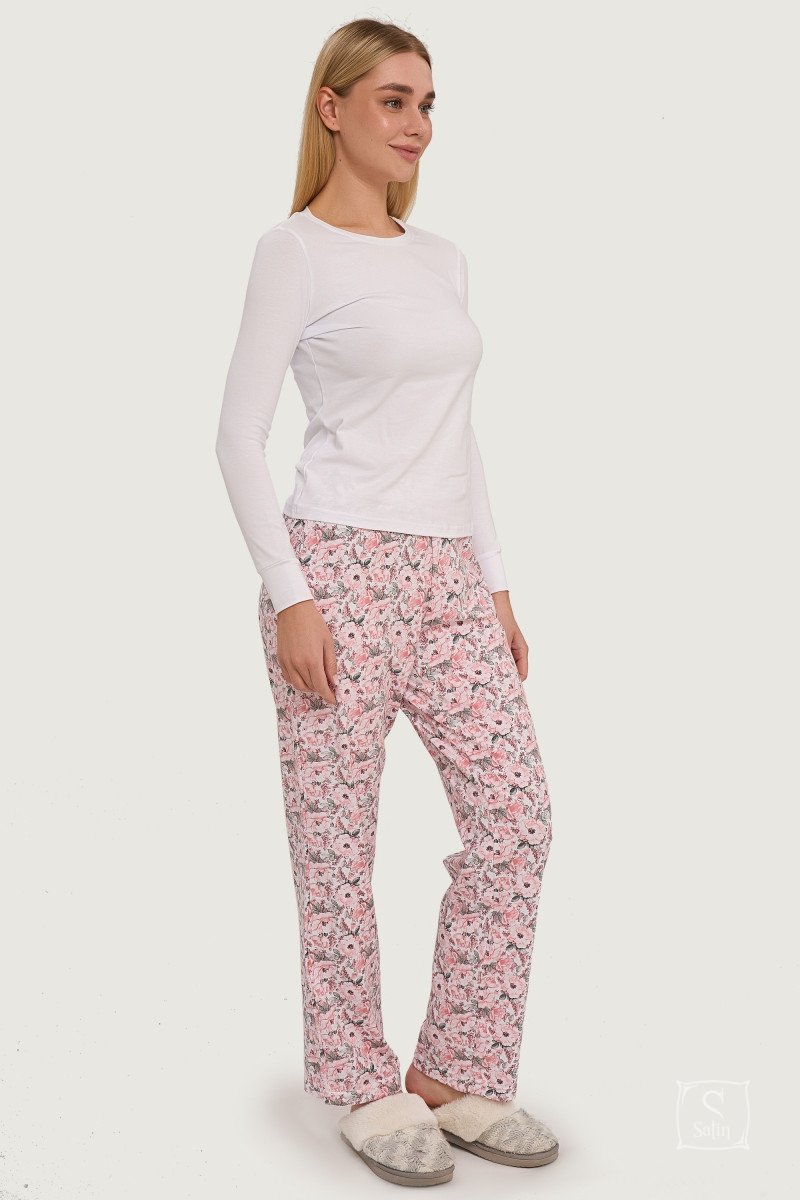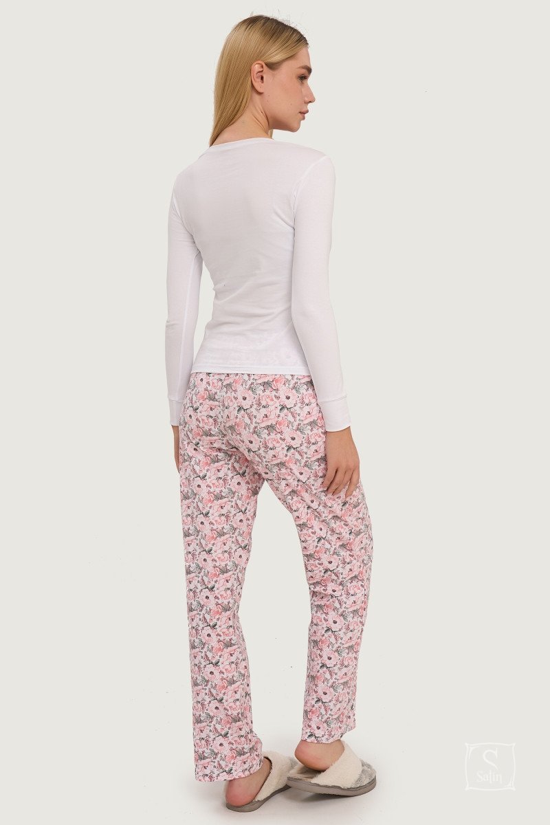 Женский пижамный комплект German Volf 24044, состоящий из белого лонгслива и брюк с цветочным принтом, – это сочетание нежности, комфорта и романтического стиля, которое идеально подходит для уютных вечеров и приятного сна. Выполненный из мягкого, дышащего материала этот комплект обеспечивает ощущение легкости и уюта, даря полный комфорт во время отдыха. Классический белый цвет лонгслива и нежный цветочный принт на брюках создают гармоничный образ, придающий вашему стилю элегантности даже дома.