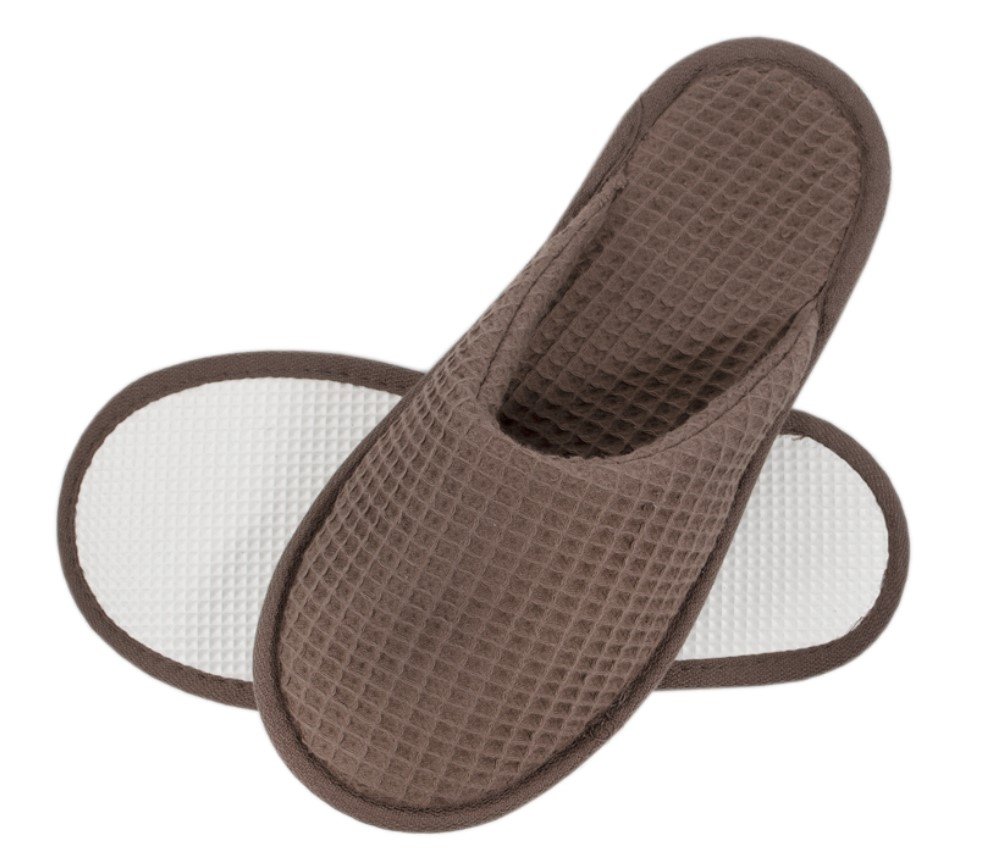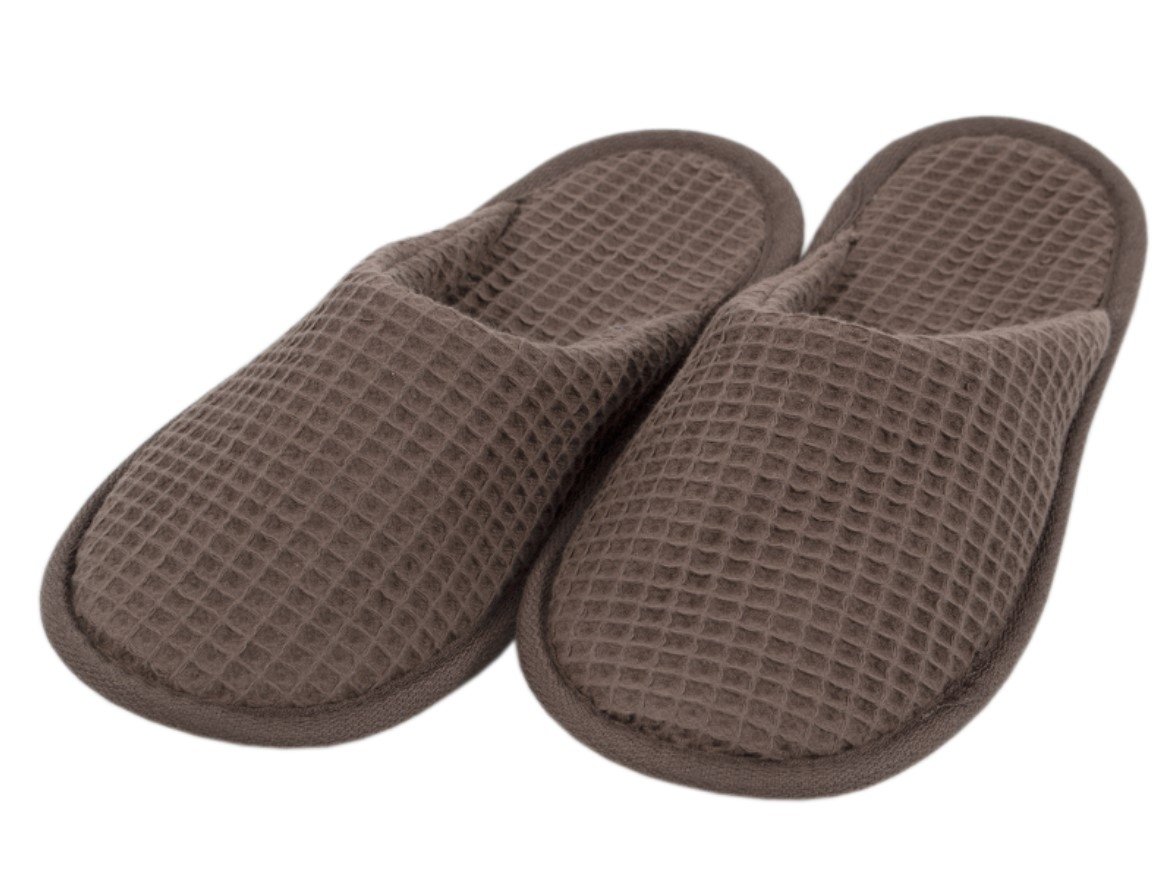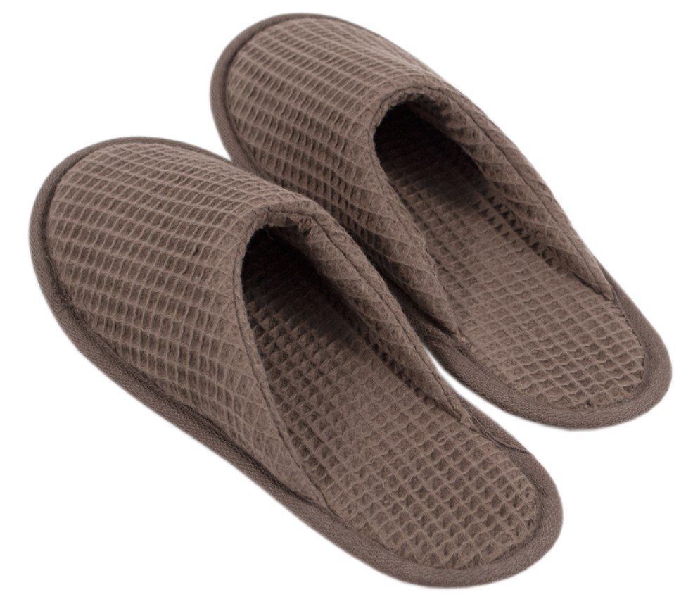 Домашние тапочки Lotus Home Waffle brown из 100% хлопка (вафельное полотно) выполнены в коричневом цвете с закрытым носком. Качественная и удобная обувь для дома или отеля.