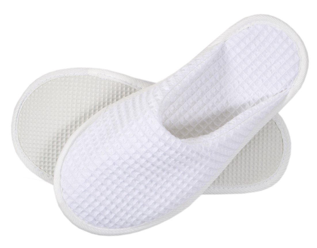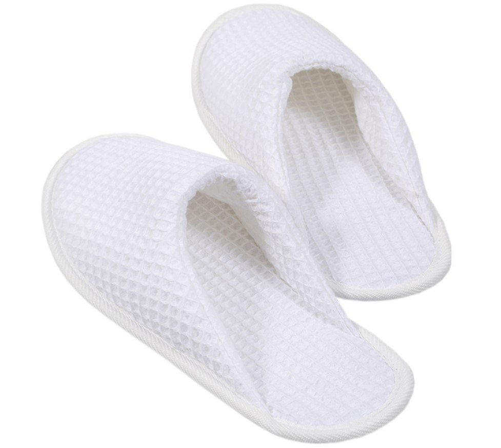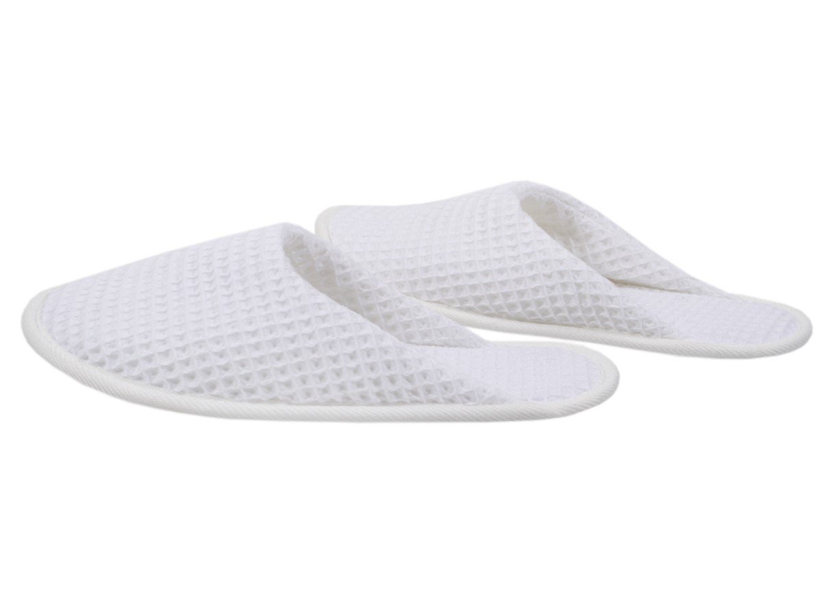 Домашние тапочки Lotus Home Waffle white из 100% хлопка (вафельное полотно) выполнены в белом цвете с закрытым носком. Качественная и удобная обувь для дома или отеля.