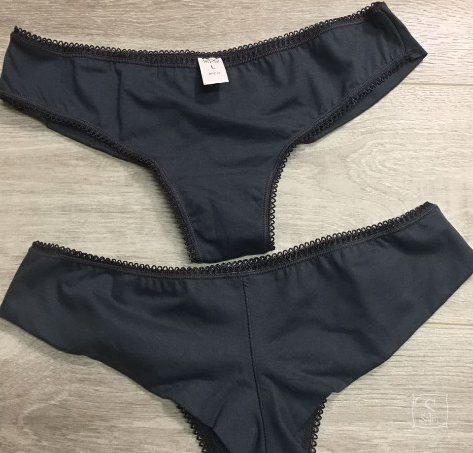 Бразилианы — трусы с зауженной полоской ткани сзади, открывающие ягодицы. Трусы выполнены в бежевом цвете с тонким кружевом спереди. Идеально подходят для облегающей одежды. Незаметны под одеждой сзади.