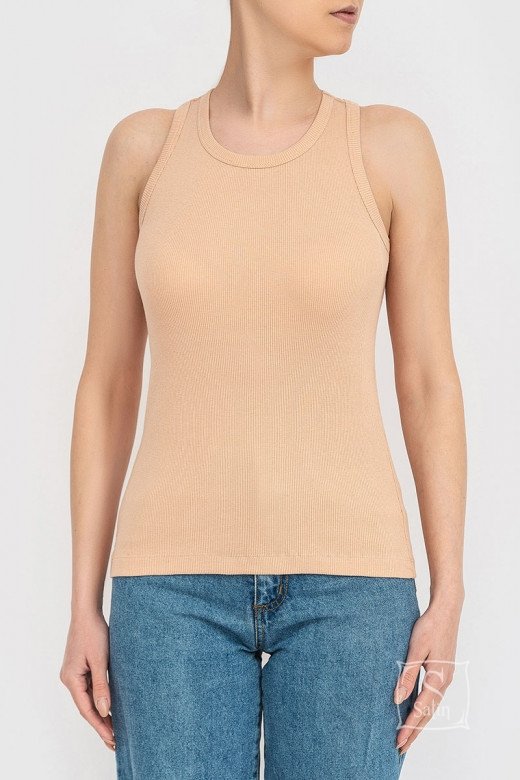 Базовая майка в рубчик, удобная и очень приятная к телу. Майка борцовка может одеваться под пиджак, куртку, а также носиться как самостоятельный элемент гардероба. Майка с американским вырезом.
