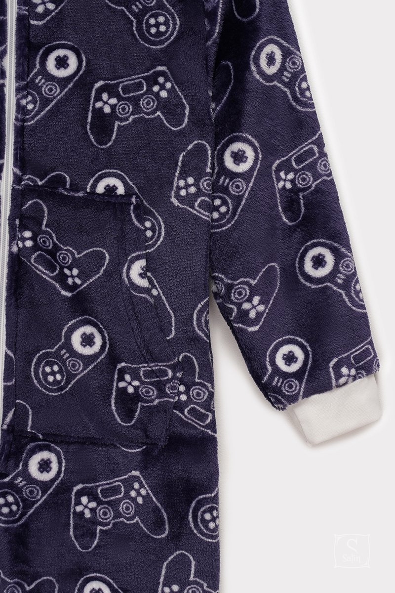 Детский комбинезон-слип German Volf 24008 синего цвета из высококачественного велсофта (100% полиэстер), что обеспечивает удобство и комфорт вашему ребенку. Мягкий и очень приятный для тела. Манжеты на белых резинках и удобная молния позволяют легко одеваться и снимать комбинезон. Забавный рисунок с джойстиками обязательно понравится вашему ребенку. Этот комбинезон идеально подходит для игр в холодное время года или активного отдыха дома. Пусть ваш ребенок выглядит стильно и чувствует себя комфортно в этом замечательном комбинезоне!