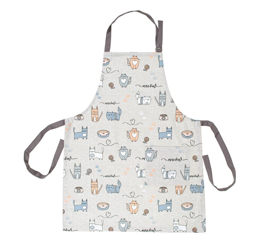 Фартук с регулируемой завязкой Home Line "Кіт на кухні" бежевого цвета с узором котики. Фартук удобный и практичный в использовании. Он отлично защищает одежду от возможных загрязнений. Он изготовлен и высококачественного материала, сохранит цвет даже после многократной стирки. Красивый и стильный кухонный фартук понравится каждой домохозяйке.