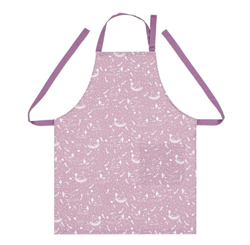 Фартук с регулируемой завязкой Home Line "Курочки" выполнен в лилово-сиреневых тонах с узором курочки.