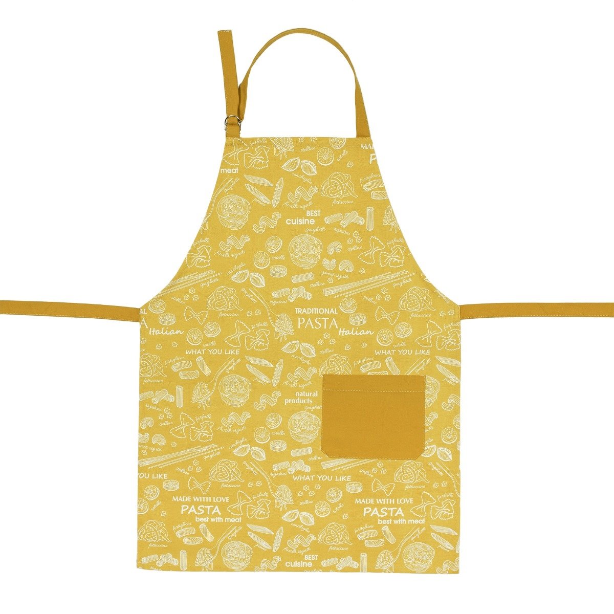 Фартук с регулируемой завязкой Home Line "Паста" цвета охра с узором разных видов пасты. Фартук удобный и практичный в использовании. Он отлично защищает одежду от возможных загрязнений. Он изготовлен и высококачественного материала, сохранит цвет даже после многократной стирки. Красивый и стильный кухонный фартук понравится каждой домохозяйке.