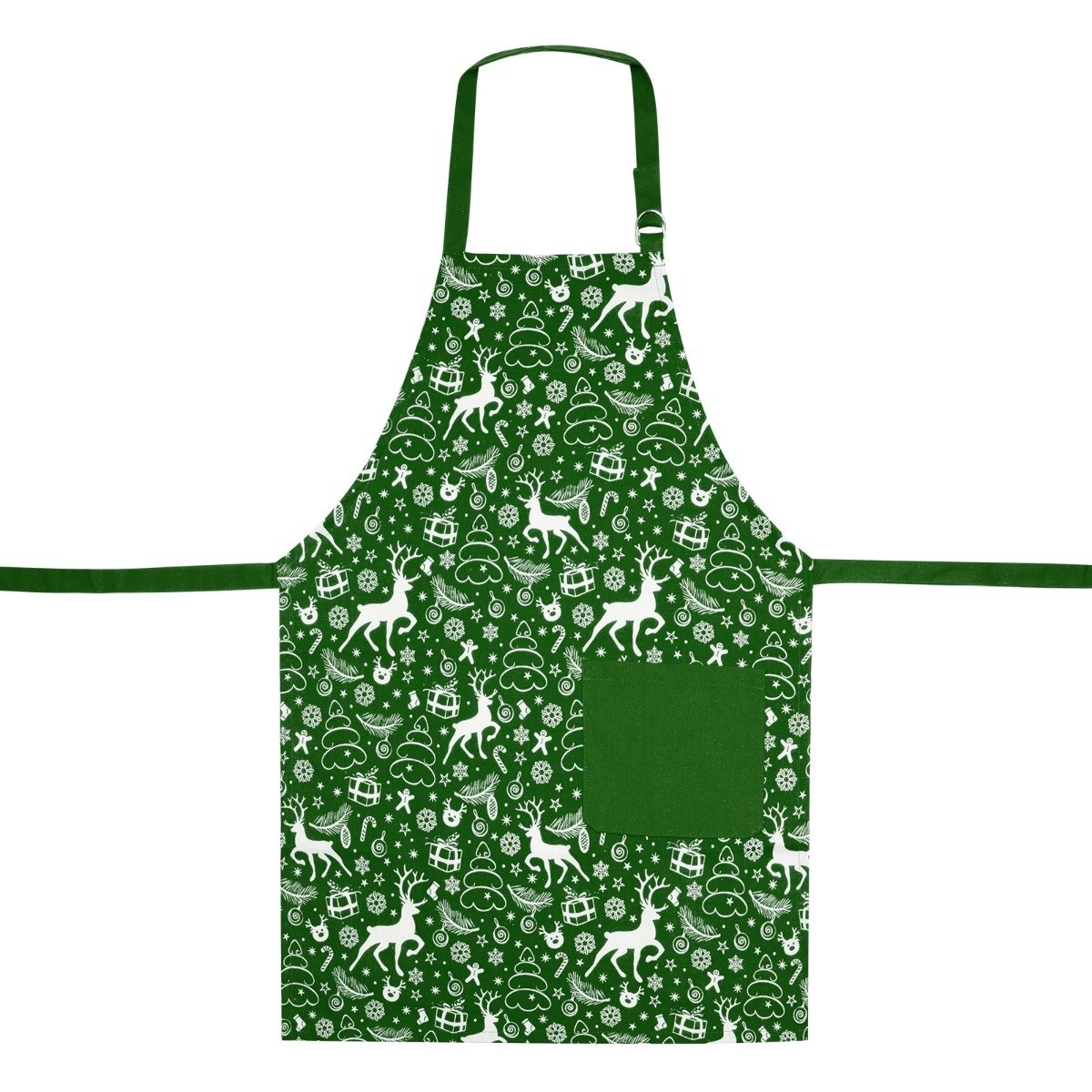 Фартук с регулируемой завязкой Home Line зеленого цвета с новогодним узором. Фартук удобный и практичный в использовании. Он отлично защищает одежду от возможных загрязнений. Он изготовлен и высококачественного материала, сохранит цвет даже после многократной стирки. Красивый и стильный кухонный фартук понравится каждой домохозяйке.