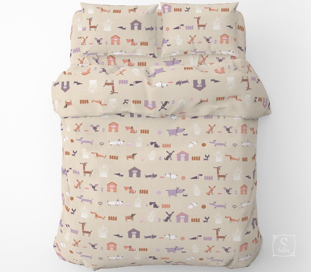 Комплект постельного белья Home Line из бязи Гав-гав пісочний украшен рисунком собачки.