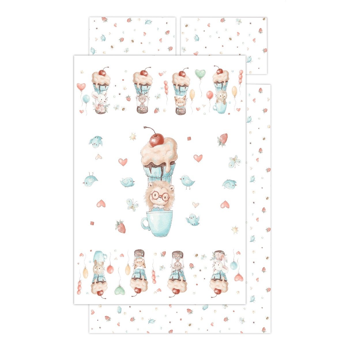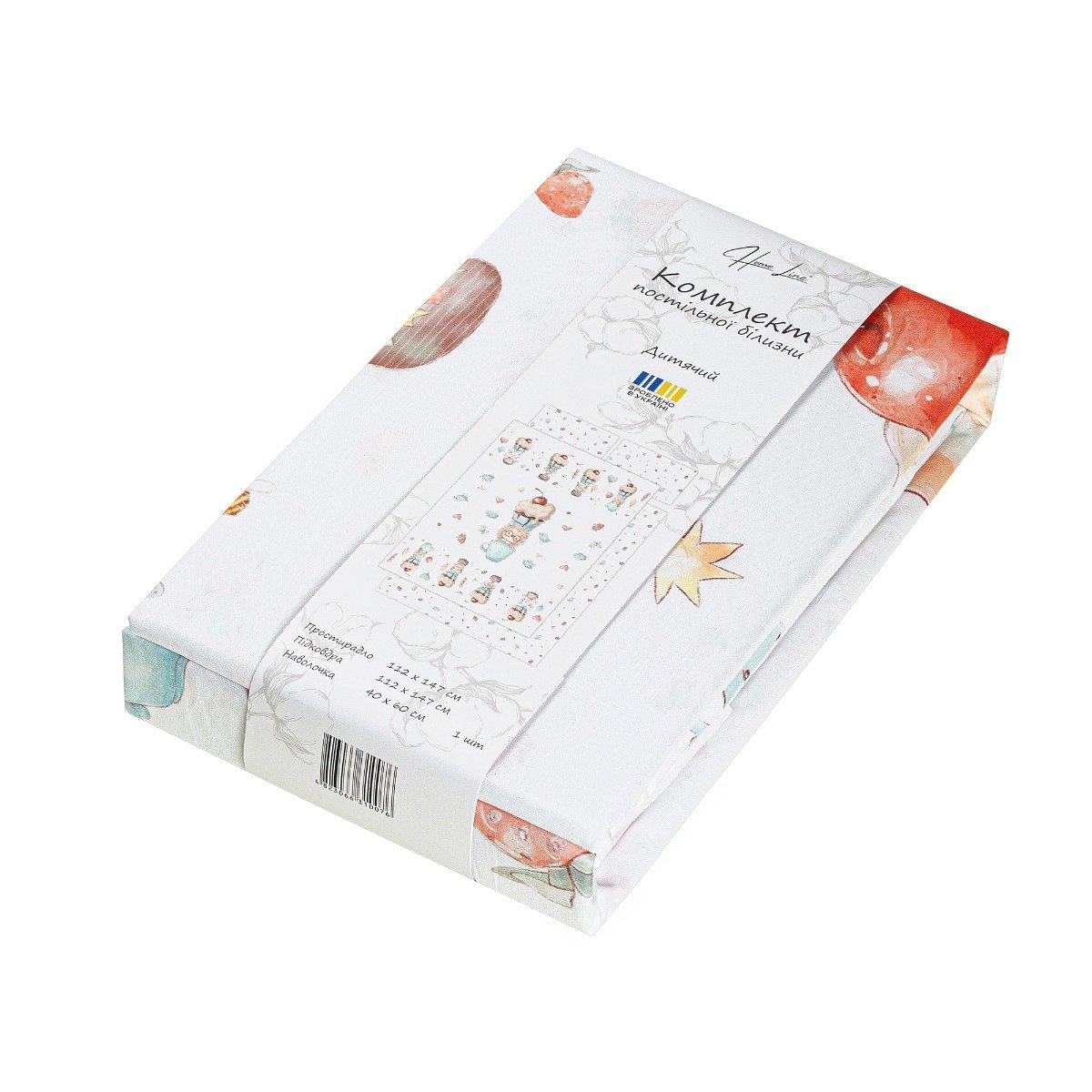 Детский в кроватку: Пододеяльник: 112х147 см - 1 шт., Простынь: 112х147 см - 1 шт., Наволочка: 40х60 см – 1 шт.