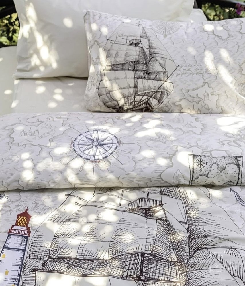 Подростковое постельное белье Altinbasak. Ранфорс Albert Sabre выполнен в бежево-голубых тонах с красивым морским принтом.