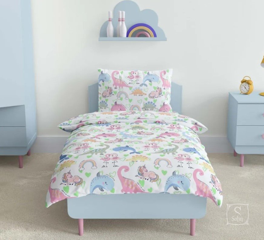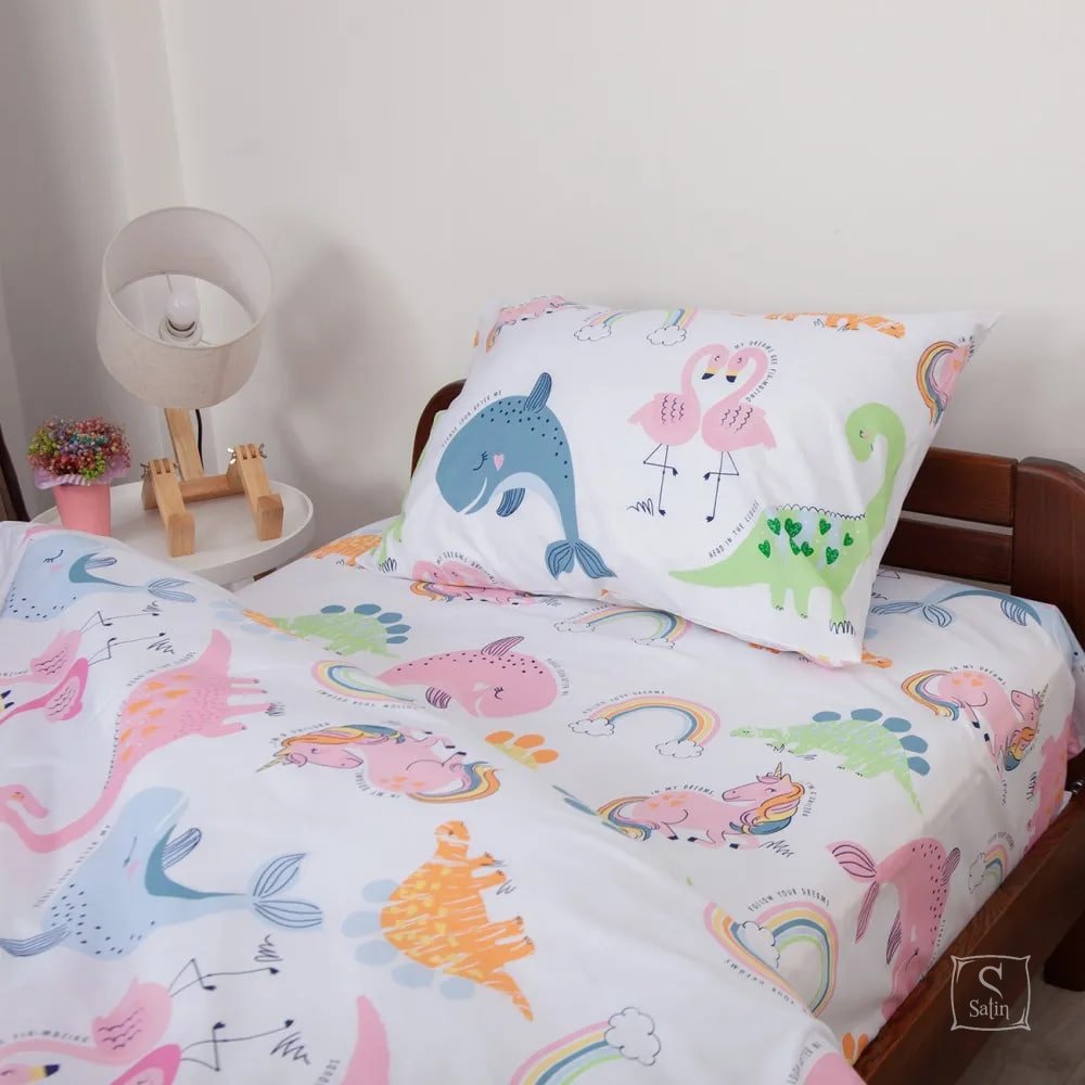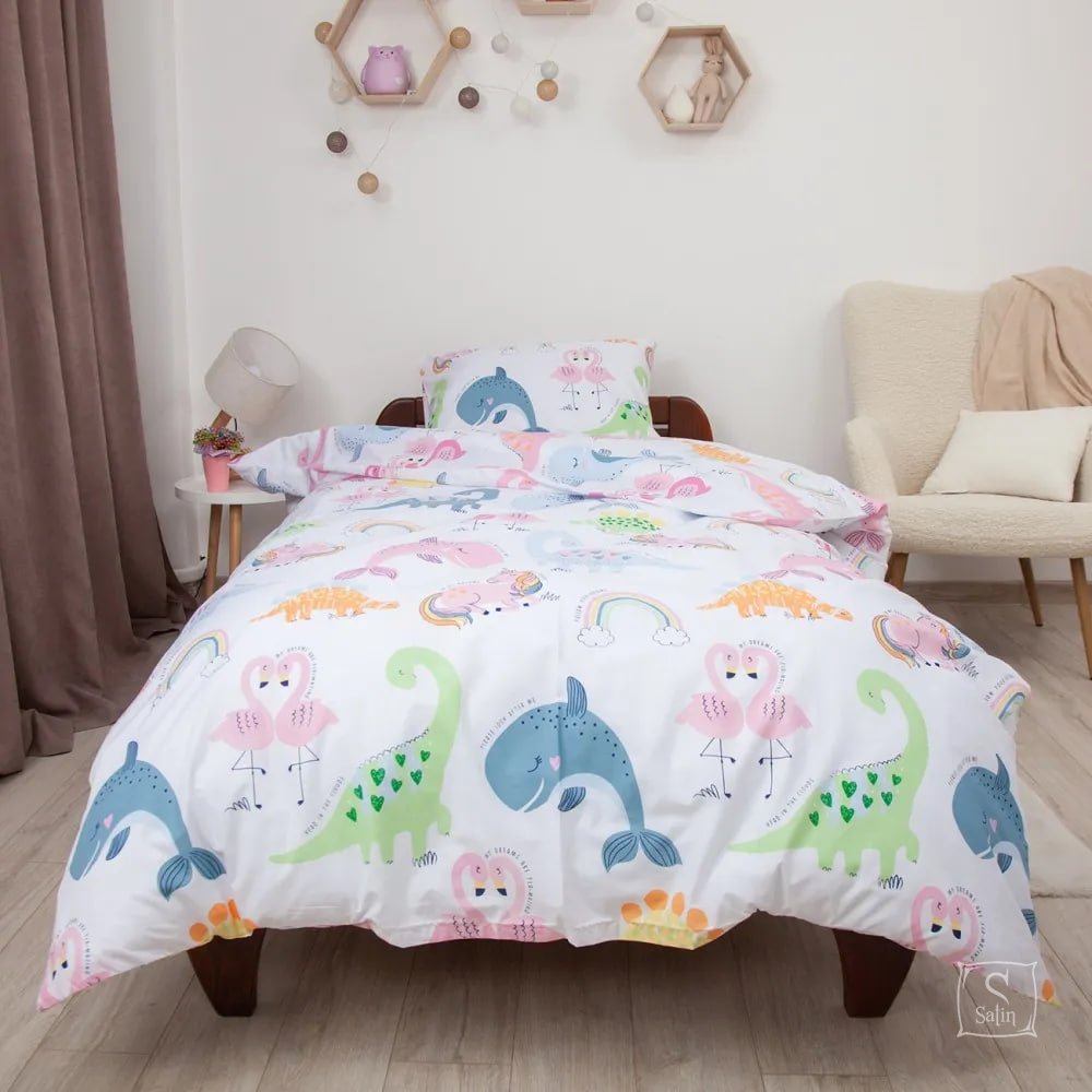 Постельное белье ТЕП Soft Dreams Дино выполнено в разноцветных тонах с анималистическим узором.