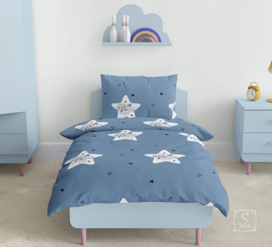 Постельное белье ТЕП Soft Dreams Мерцающая звездочка выполнено в сине-белых тонах с узором звезды.
