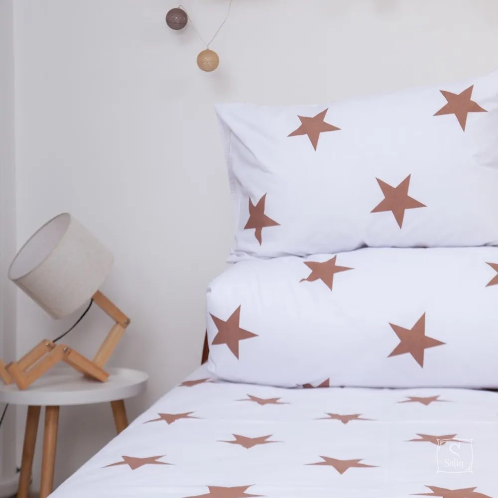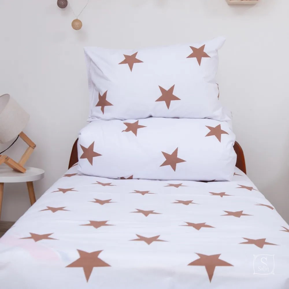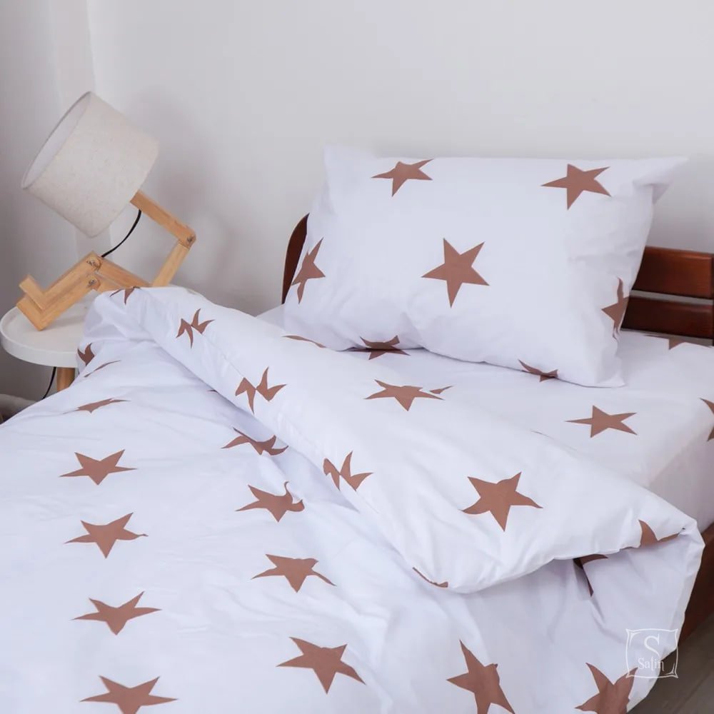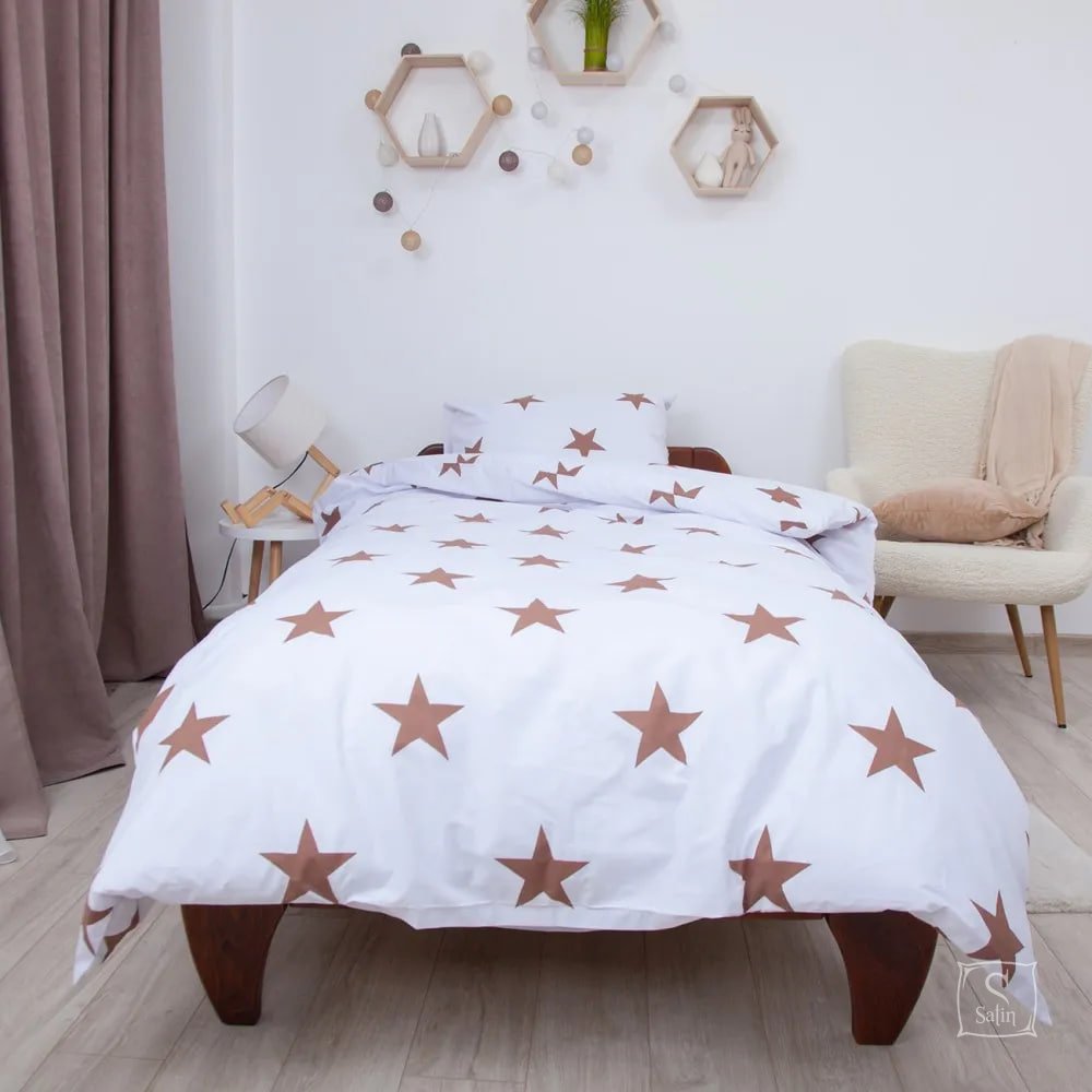Постельное белье ТЕП Soft Dreams Звёзды выполнено в бело-коричневых тонах с узором звёзды.