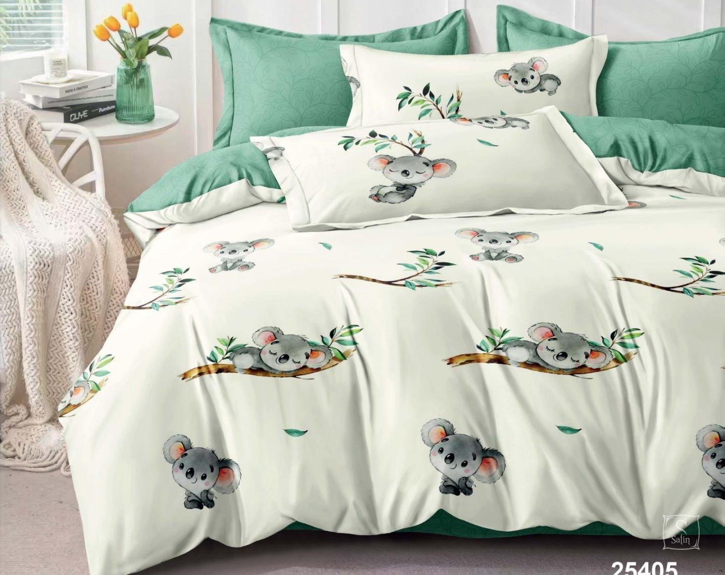 Подростковое постельное белье Viluta из ранфорса. Модель 25405 выполнена в молочно-зеленых тонах с оригинальным рисунком Коалы.