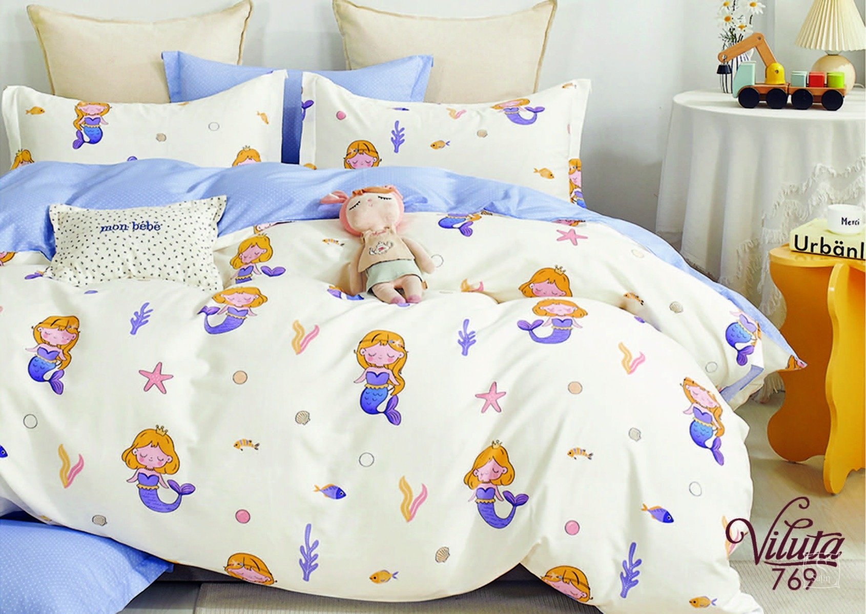 • Модель 769  выполнена в молочно-голубых тонах с принтом русалочек.