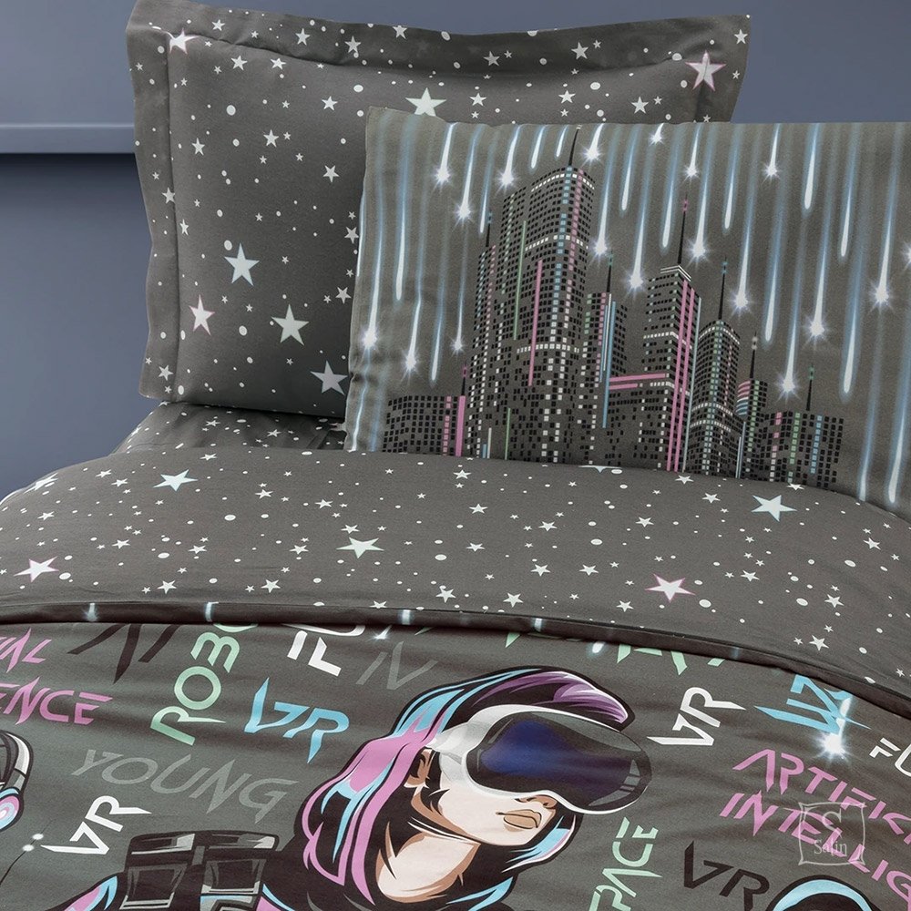 Подростковое постельное белье Altinbasak. Ранфорс Noctis Shadows выполнен в серых тонах с оригинальным 3D принтом.