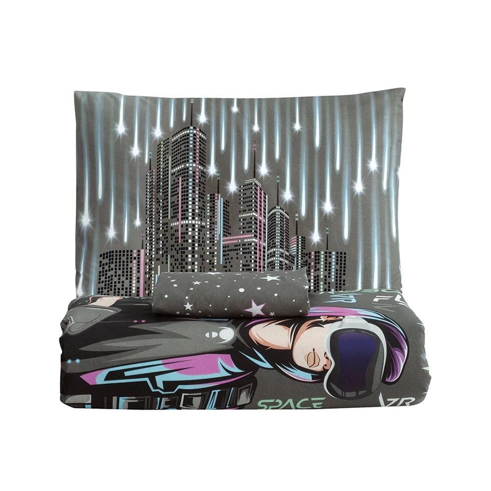 Характеристики1,5-спальный подростковый: пододеяльник: 160х220см – 1 шт., простынь: 180х240 см – 1 шт., наволочка: 50х70см - 1 шт.