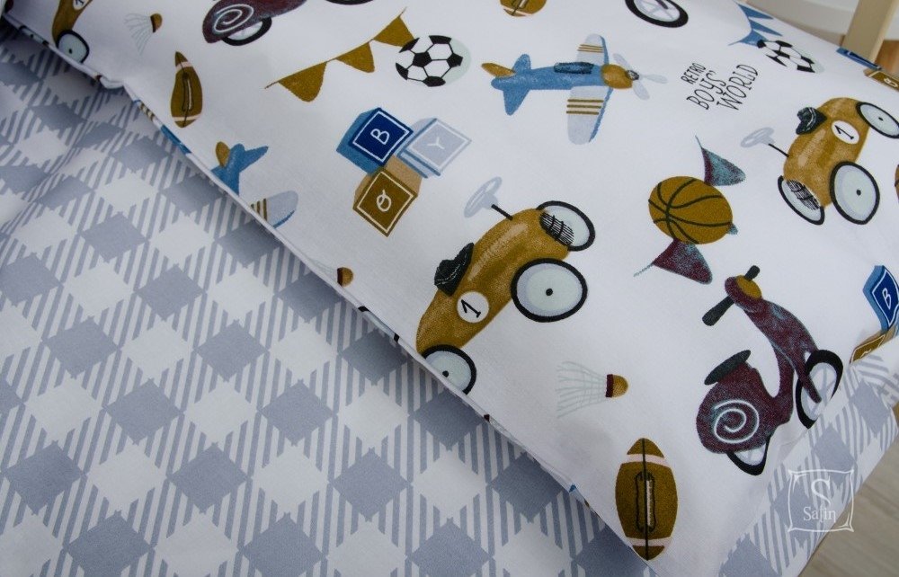 Качественный детский комплект постельного белья Ретро тачки с изображением машин и самолетов выполнен из натуральной высококачественной натуральной хлопковой ткани. Ранфорс выдерживает многократные стирки без потери качества, при этом стоит ощутимо дешевле, чем текстиль из других тканей.