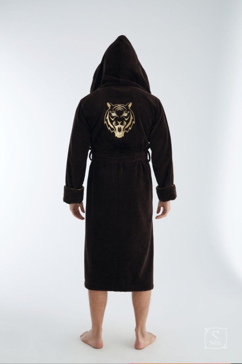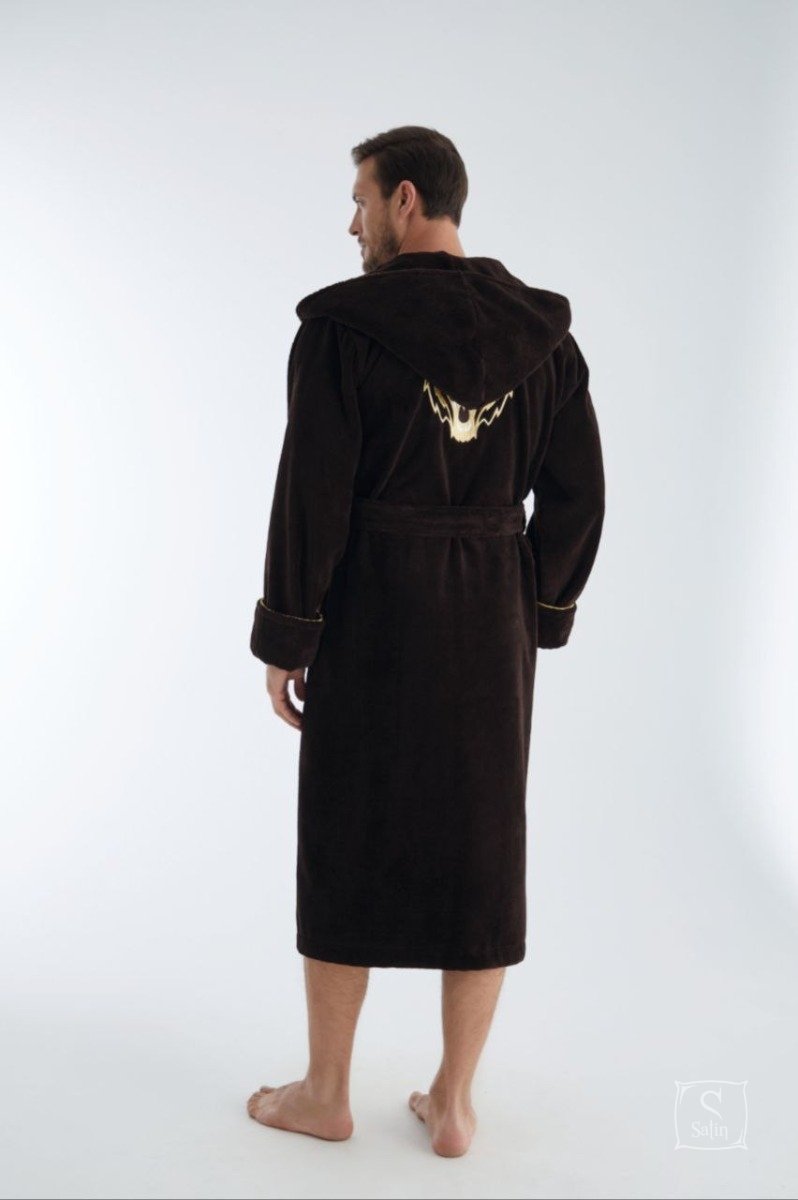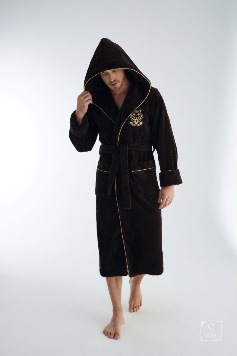 Мужской халат Nusa 1300 кофейного цвета цвета длинный с капюшоном, который сочетает в себе стиль и комфорт.