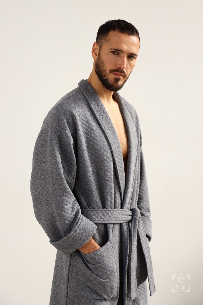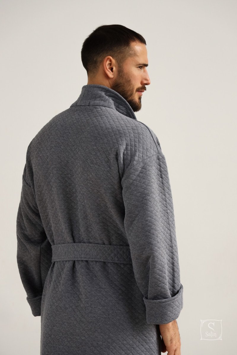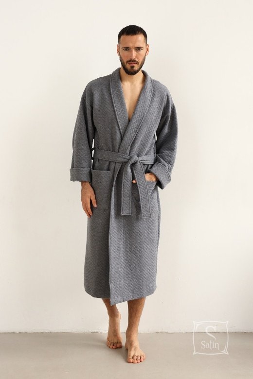 Мужской халат German Volf 23167 темно-серого цвета длинный из стеганого утепленного трикотажа – ваш идеальный спутник для уютных вечеров. Модель выполнена из ткани с использованием трикотажа капитон (80% хлопок, 20% полиэстер). Вафельная ткань натуральная, мягкая, очень хорошо пропускает воздух и испаряет влагу. Удобства этой модели добавляет широкий пояс и два больших кармана с обеих сторон, также длина рукава регулируется подкатом. Тот самый комфортабельный, домашний вариант одежды. Его изысканный дизайн и приятный на ощупь материал делают его идеальным для спокойных моментов дома. Роскошный вид и уют объединяются в этом непревзойденном мужском халате.