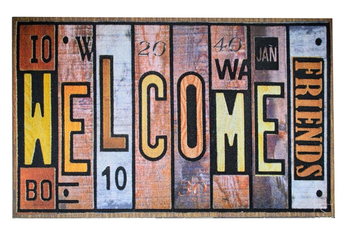 Прямоугольный придверный коврик IzziHome Mozaik Friends 8857-02 выполнен в разноцветных тонах с надписью "Welcome Friends". Подходит для использования как в помещении, так и на улице. Состав: полиэстер. На коврик нанесена цифровая печать на поверхности Flock.