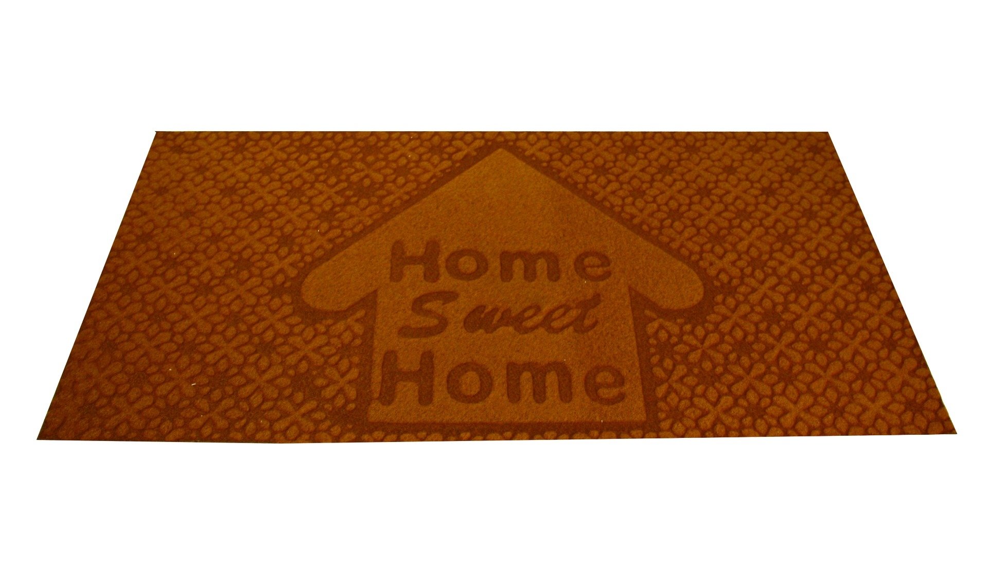 Прямоугольный придверный коврик IzziHome Parga Home Sweet Ev выполнен в коричневом цвете с надписью "Home Sweet Home". Подходит для использования как в помещении, так и на улице. Состав: 100% полиэстер.