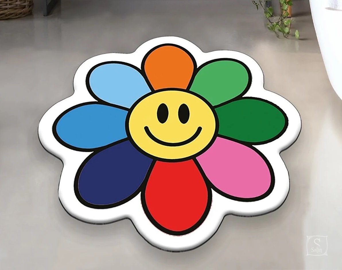 Коврик в детскую комнату Chilai Home Smiling Colorful Daisy оформлен в разноцветных тонах и украшен принтом улыбающегося цветка. Коврик выполнен из 100% полиэстера, без ворса, с антискользящим покрытием, толщиной 0,5 см.