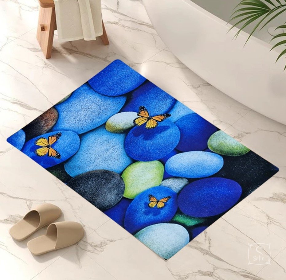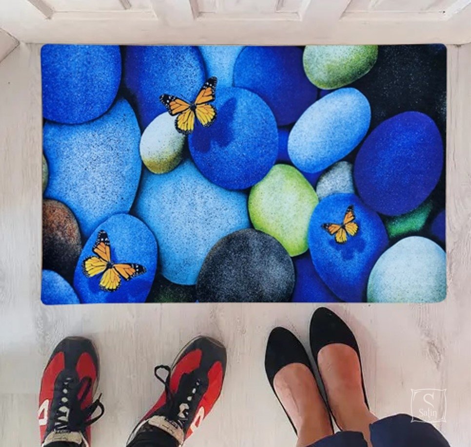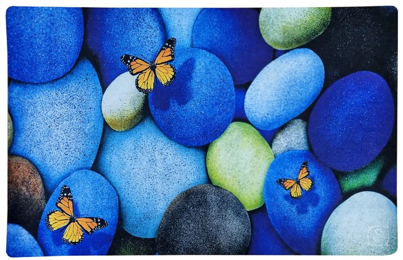 Стильный функциональный универсальный коврик IzziHome Home 2810-17 выполнен в разноцветно-голубых тонах с принтом камни и бабочки. Подходит для использования в комнате, детской, ванной и на кухне, замечательно дополнит интерьер, подарит ощущение уюта.