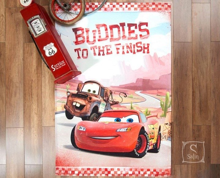 Детский коврик с лицензионным рисунком Disney Cars Buddies от турецкой компании ТАС для поклонников мультфильма "Тачки". Коврик изготовлен из 100% полиэстера, на нескользящей прорезиненной основе, а это очень важно во время активных детских игр. Коврик без ворса, не накапливает пыль и прост в уходе - его достаточно протирать влажной тканью. Так же, благодаря отсутствию ворса, коврик имеет очень четкое и яркое изоображение. Компания ТАС выпускает лицензированный текстиль с героями мультфильмов Disney, а это значит, что рисунок будет точно таким же как в любимых мультфильмах.