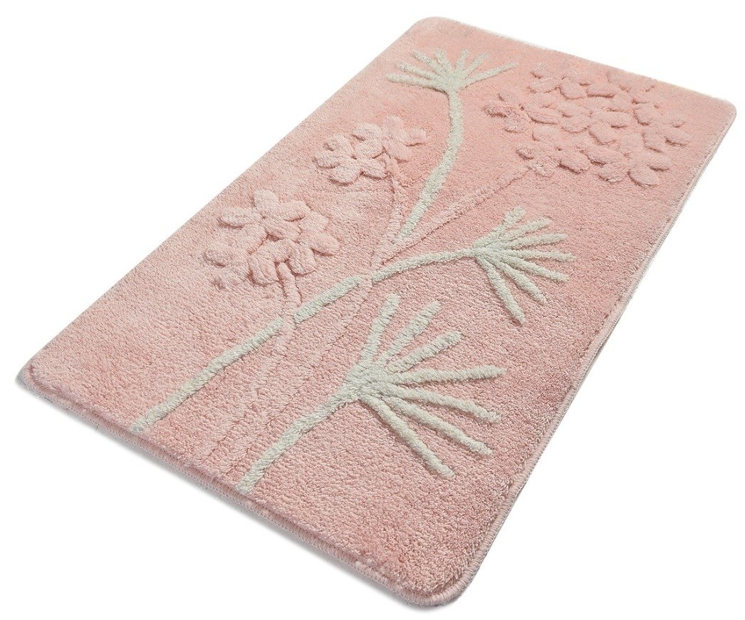 Коврик для ванной Chilai Home Orkide Pudra розового цвета с рисунком цветов из 100% акрила, с антискользящим покрытием толщиной 1 см.