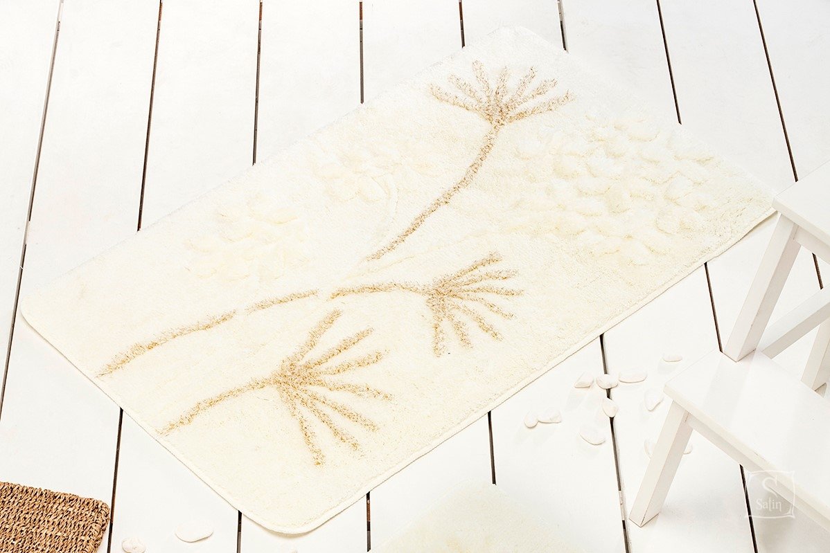 Коврик для ванной Chilai Home ORKIDE ECRU кремового цвета с растительным рисунком из 100% акрила с антискользящим покрытием толщиной 1 см.