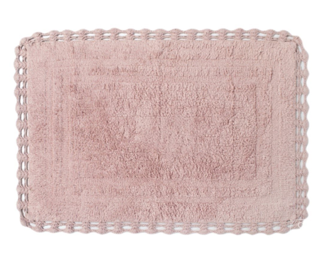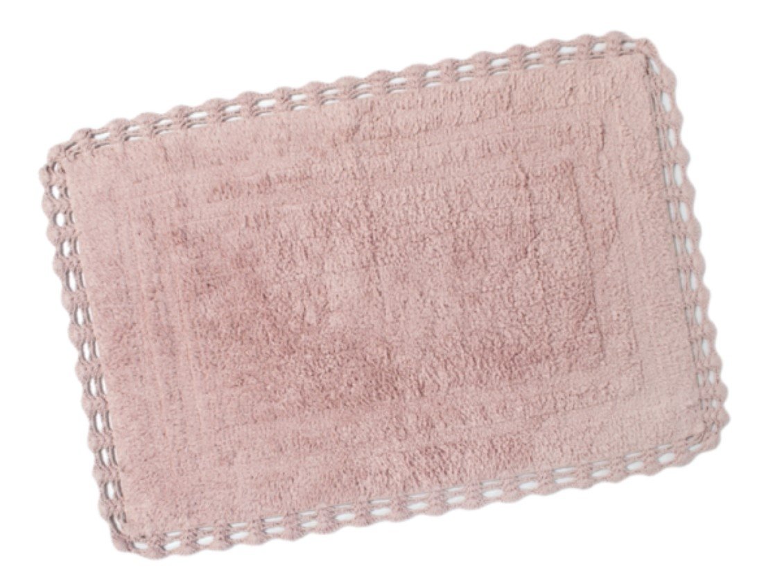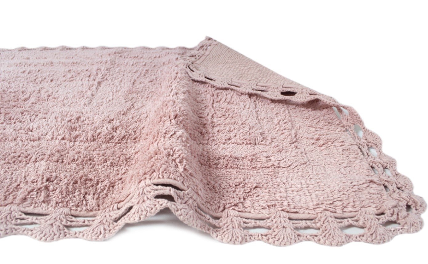 Коврик прямоугольной формы Debra g.kurusu выполнен из 100% хлопка в пудровом цвете, украшен геометрическим узором и плетеным кружевом по периметру. Создаст в ванной или любой другой комнате Вашего жилья привлекательный акцент, обеспечит ножкам тепло и безопасность. Такой коврик прекрасно смотрится, долговечен, отлично стирается.