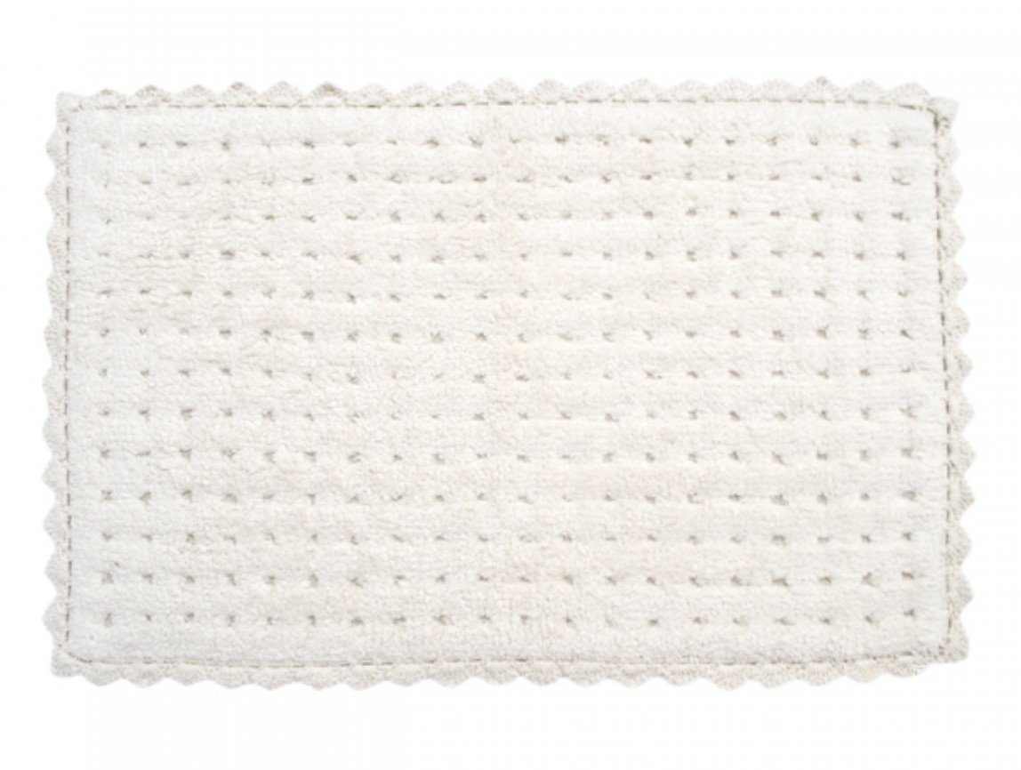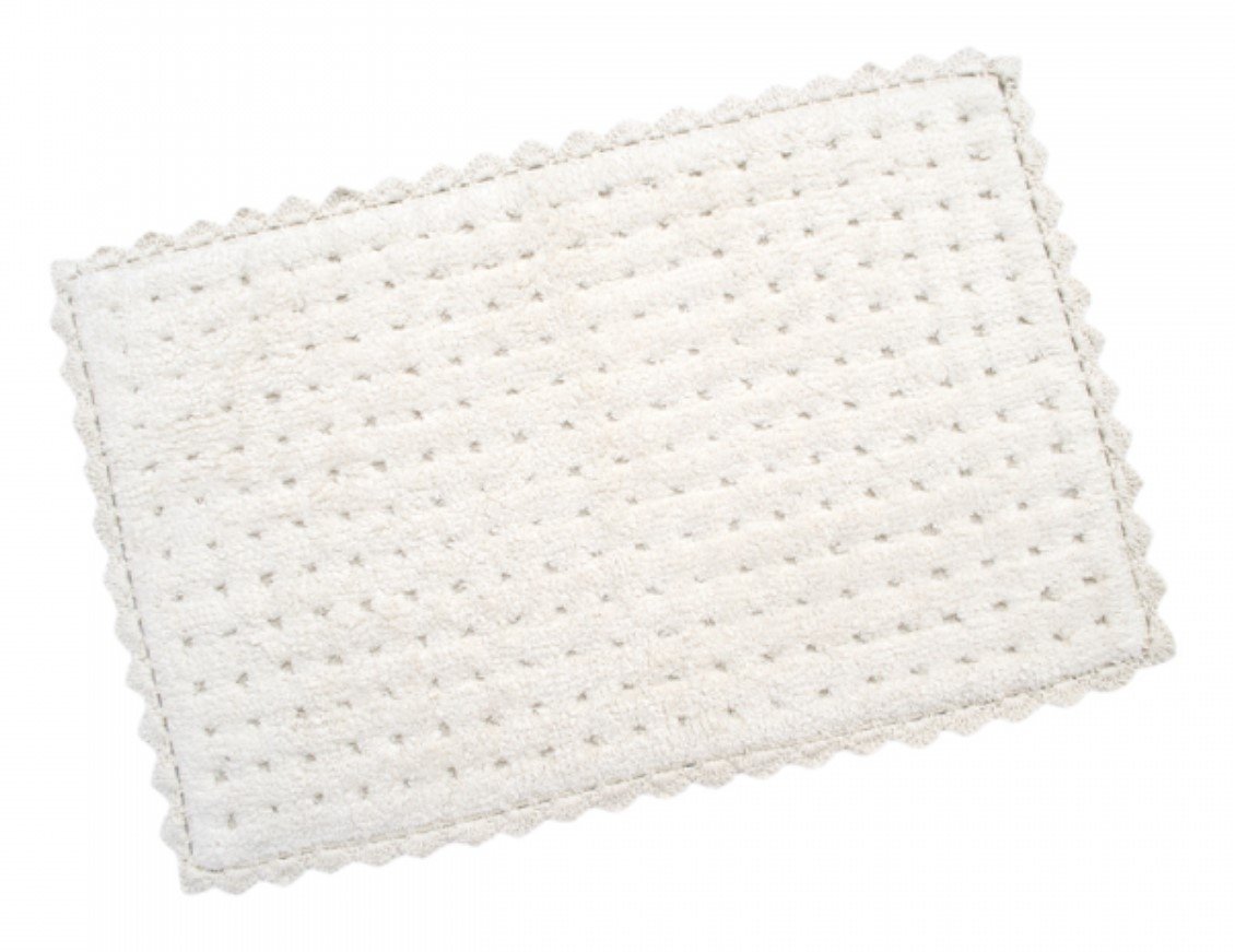 Коврик прямоугольной формы Garnet krem выполнен из 100% хлопка в кремовом цвете, с вафельным узором на ворсе и кружевной обвязкой по краю. Создаст в ванной или любой другой комнате Вашего жилья привлекательный акцент, обеспечит ножкам тепло и безопасность. Такой коврик прекрасно смотрится, долговечен, отлично стирается.