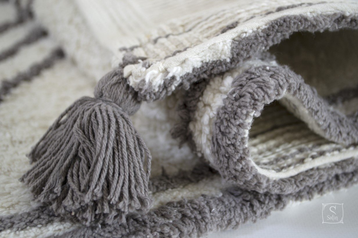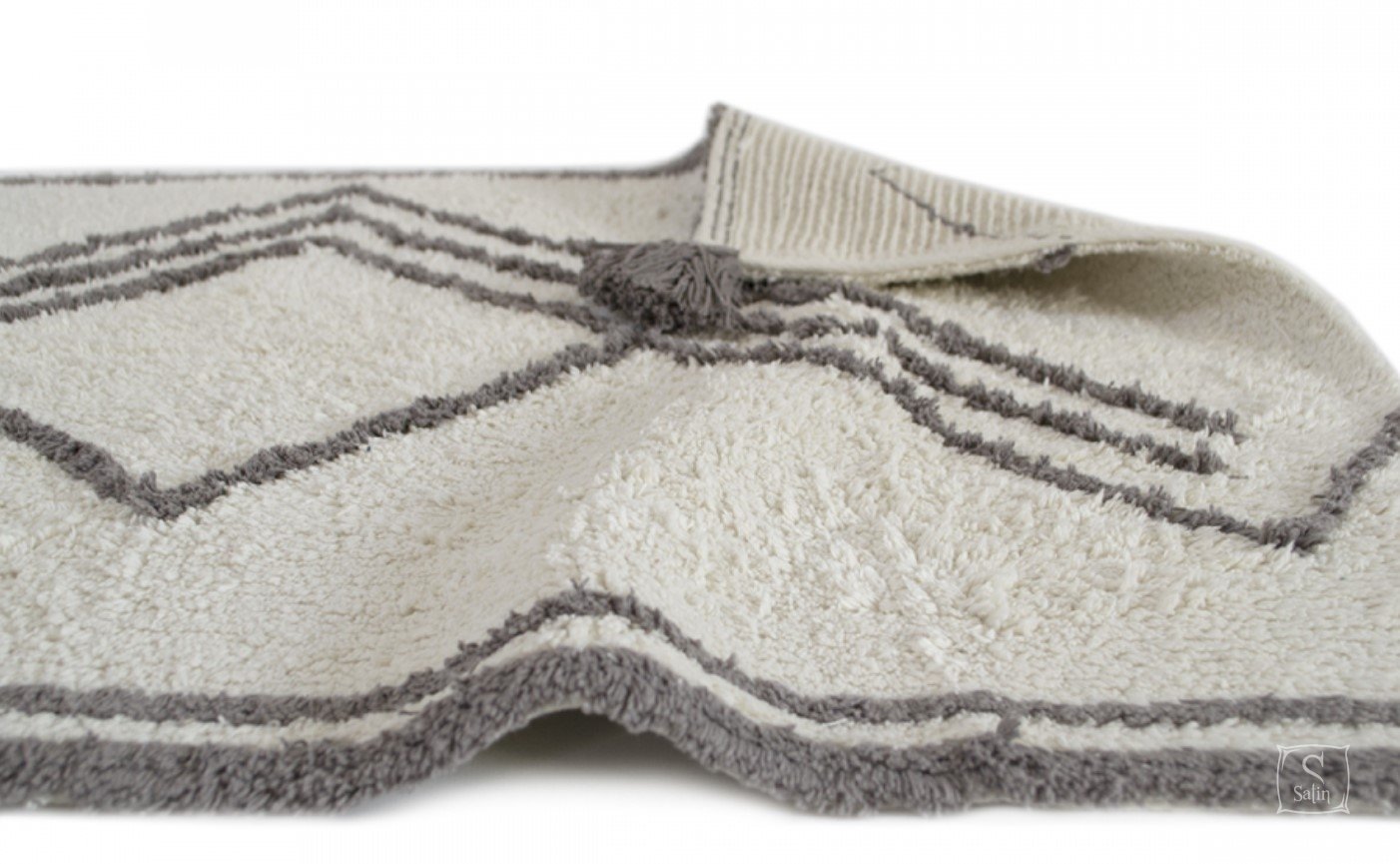 Коврик прямоугольной формы Lark gri выполнен из 100% хлопка в серо-бежевых тонах, с геометрическим узором и кисточками. Создаст в ванной или любой другой комнате Вашего жилья привлекательный акцент, обеспечит ножкам тепло и безопасность. Такой коврик прекрасно смотрится, долговечен, отлично стирается.