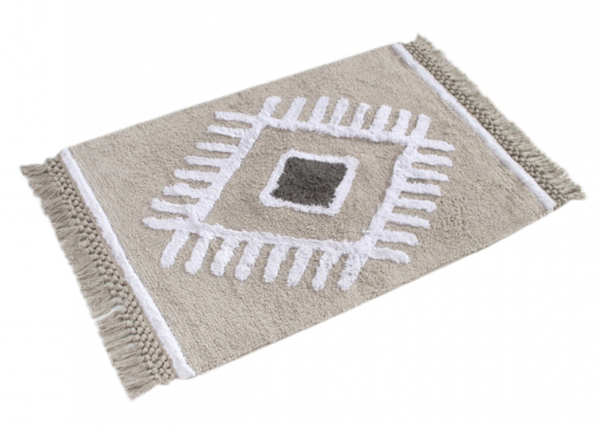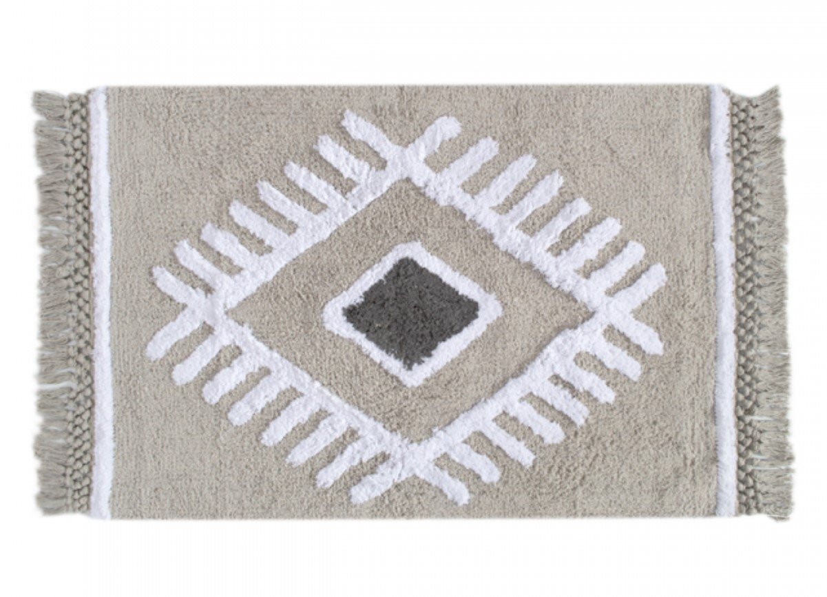 Коврик прямоугольной формы Nell gri выполнен из 100% хлопка в сером цвете, декорирован стильным узором на ворсе и бахромой по краю. Создаст в ванной или любой другой комнате Вашего жилья привлекательный акцент, обеспечит ножкам тепло и безопасность. Такой коврик прекрасно смотрится, долговечен, отлично стирается.